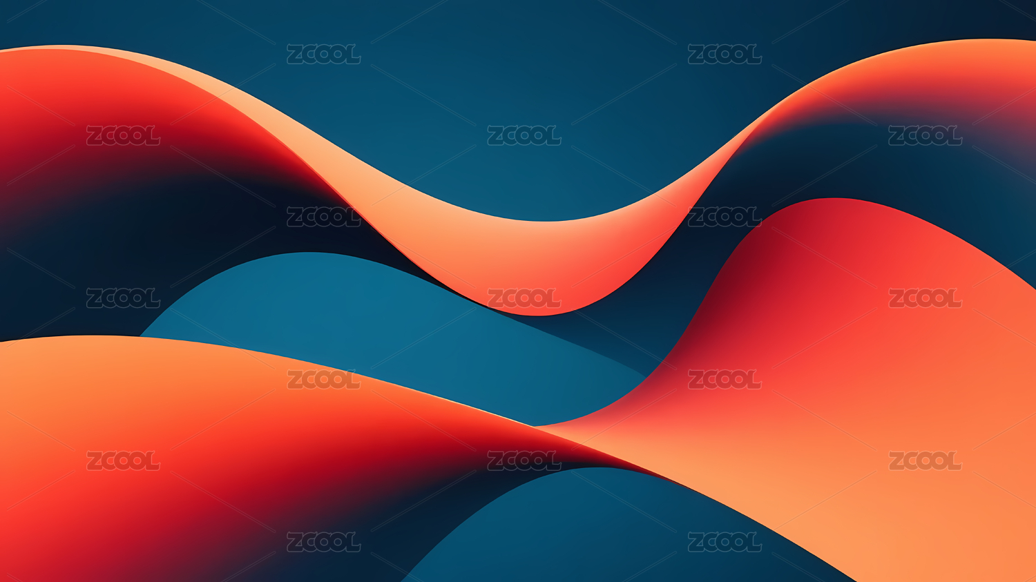 深蓝橙色波浪图案设计