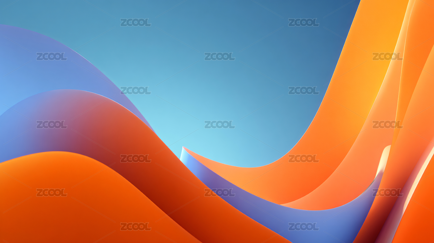 橙蓝波浪曲线浅蓝天空