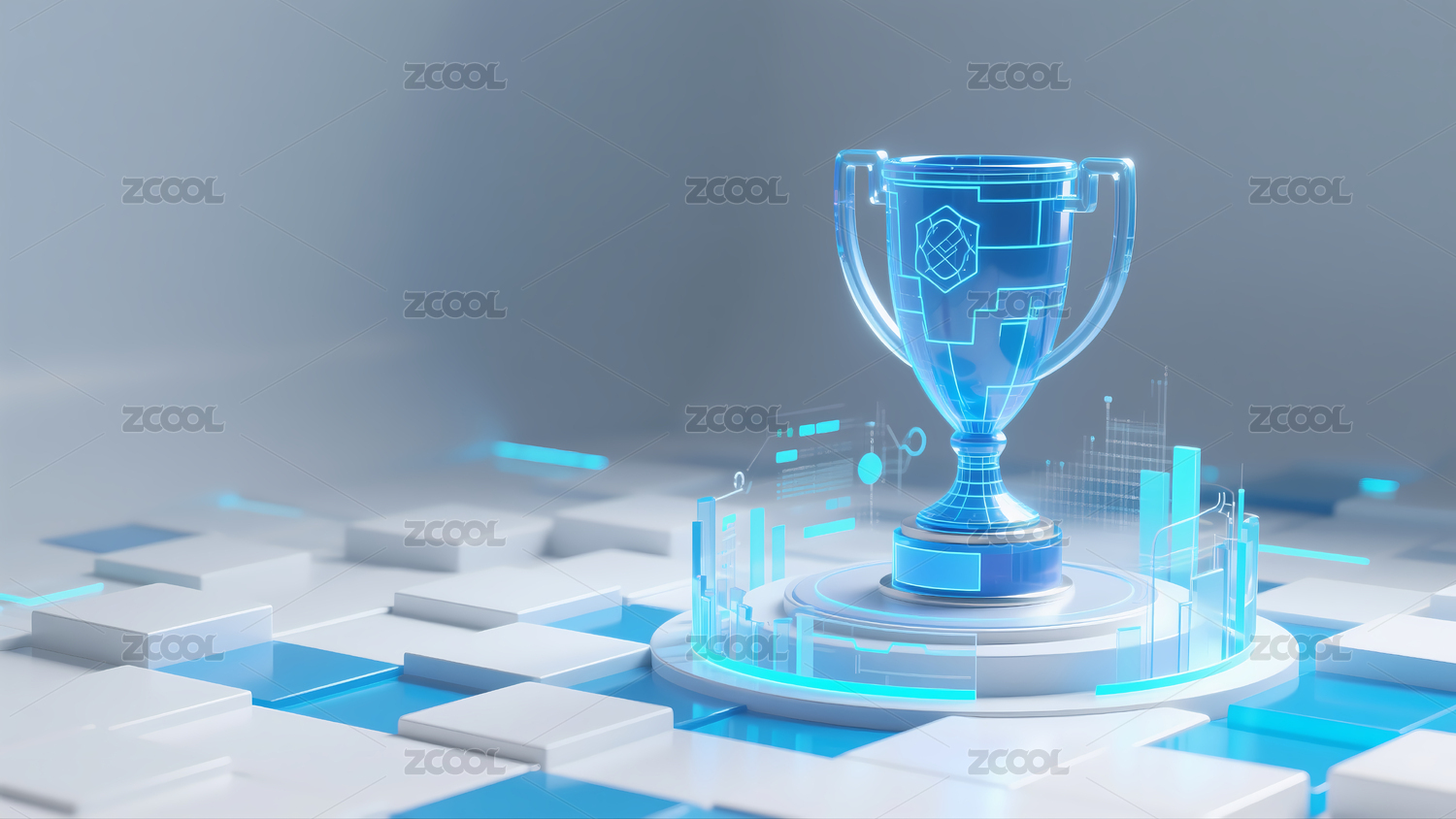 奖杯,蓝色,渐变,数据流,科技,未来,成就,荣耀,几何,KV