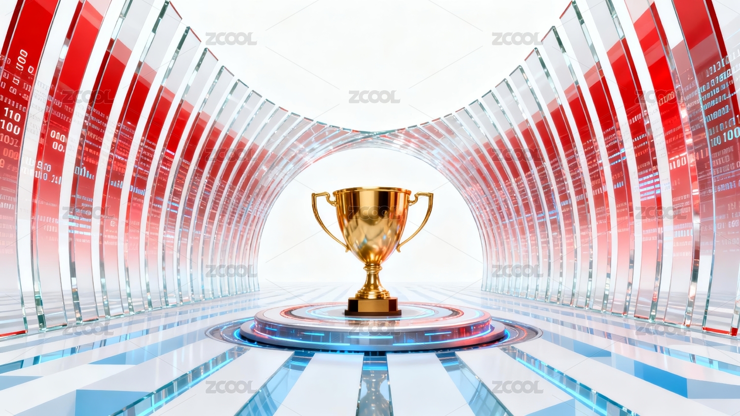 金色奖杯红蓝科技颁奖场景