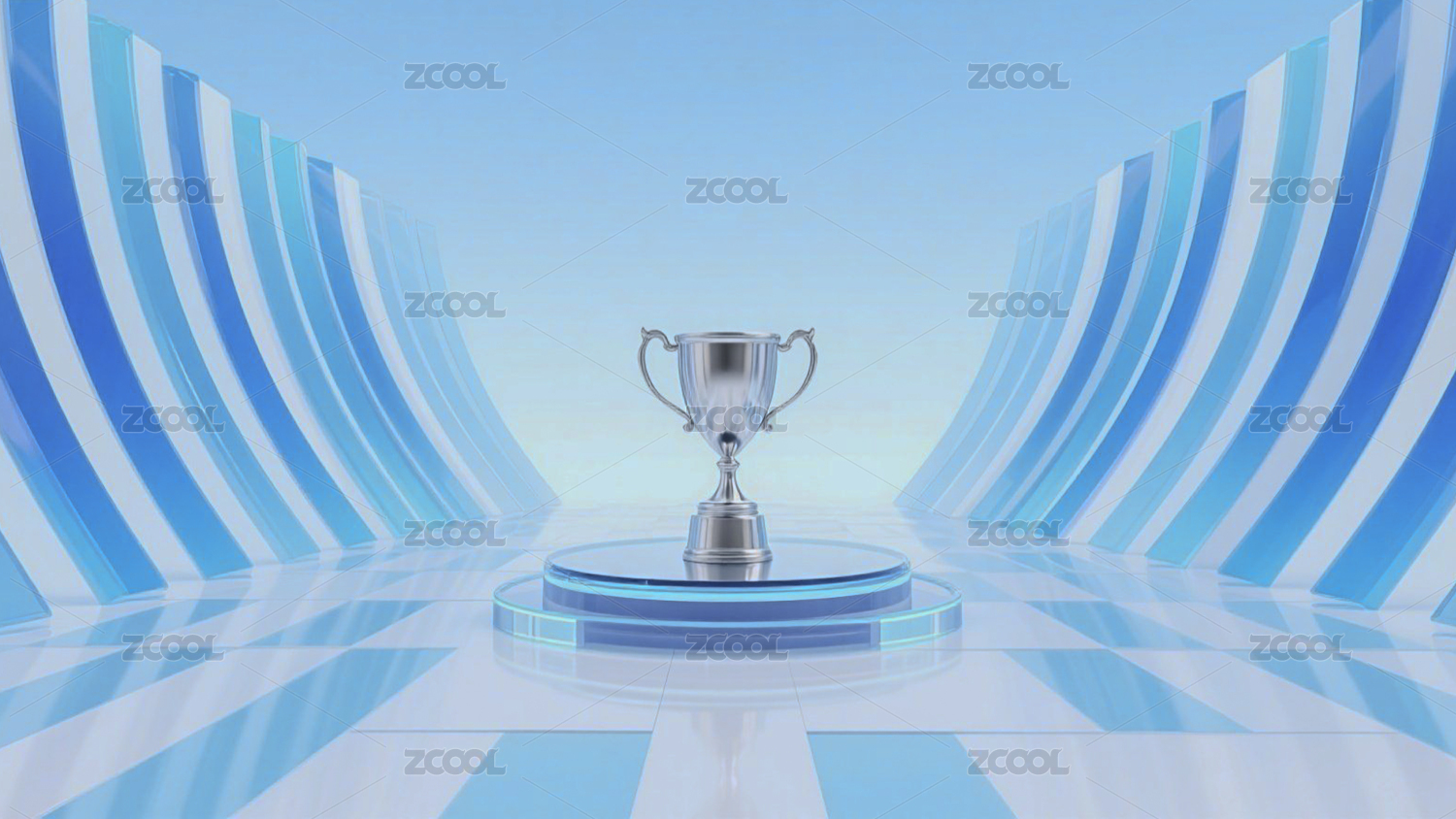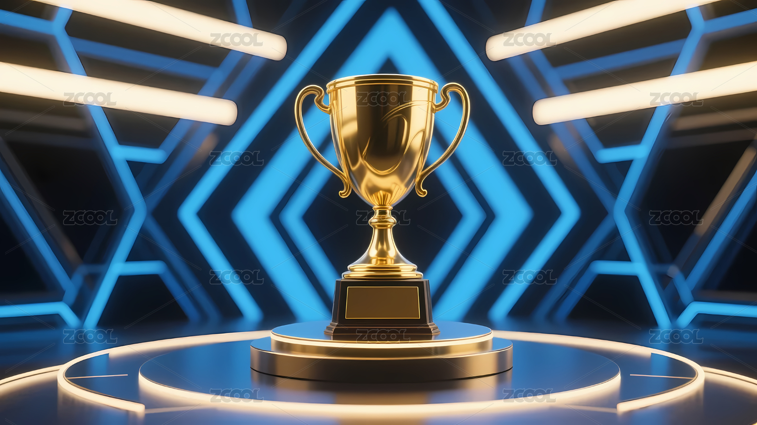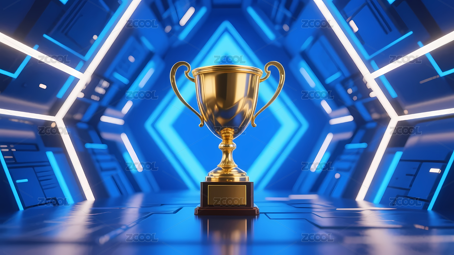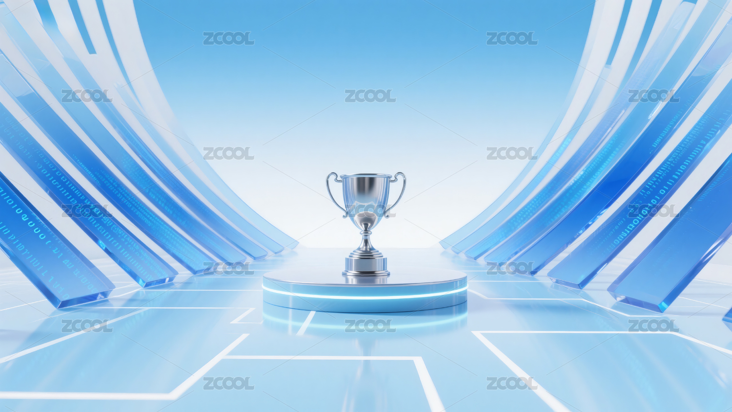 奖杯,蓝色,渐变,数据流,科技,未来,成就,荣耀,几何,KV