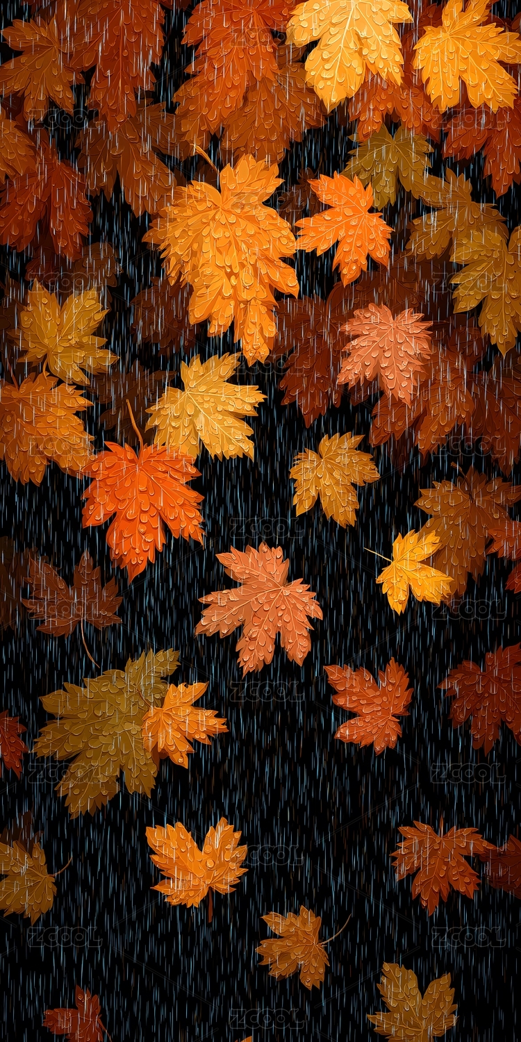 秋日雨景枫叶