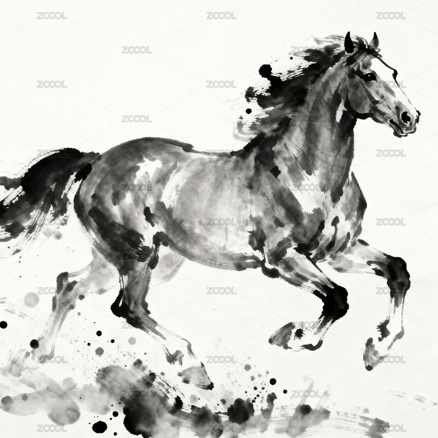 马年,生肖,主视觉,商业,壁纸,奔马,水墨,写意,艺术,创作