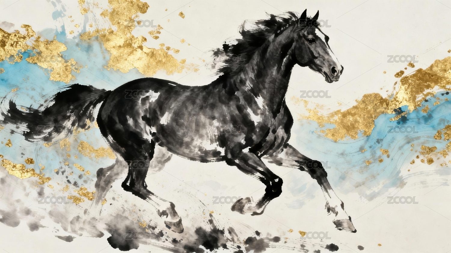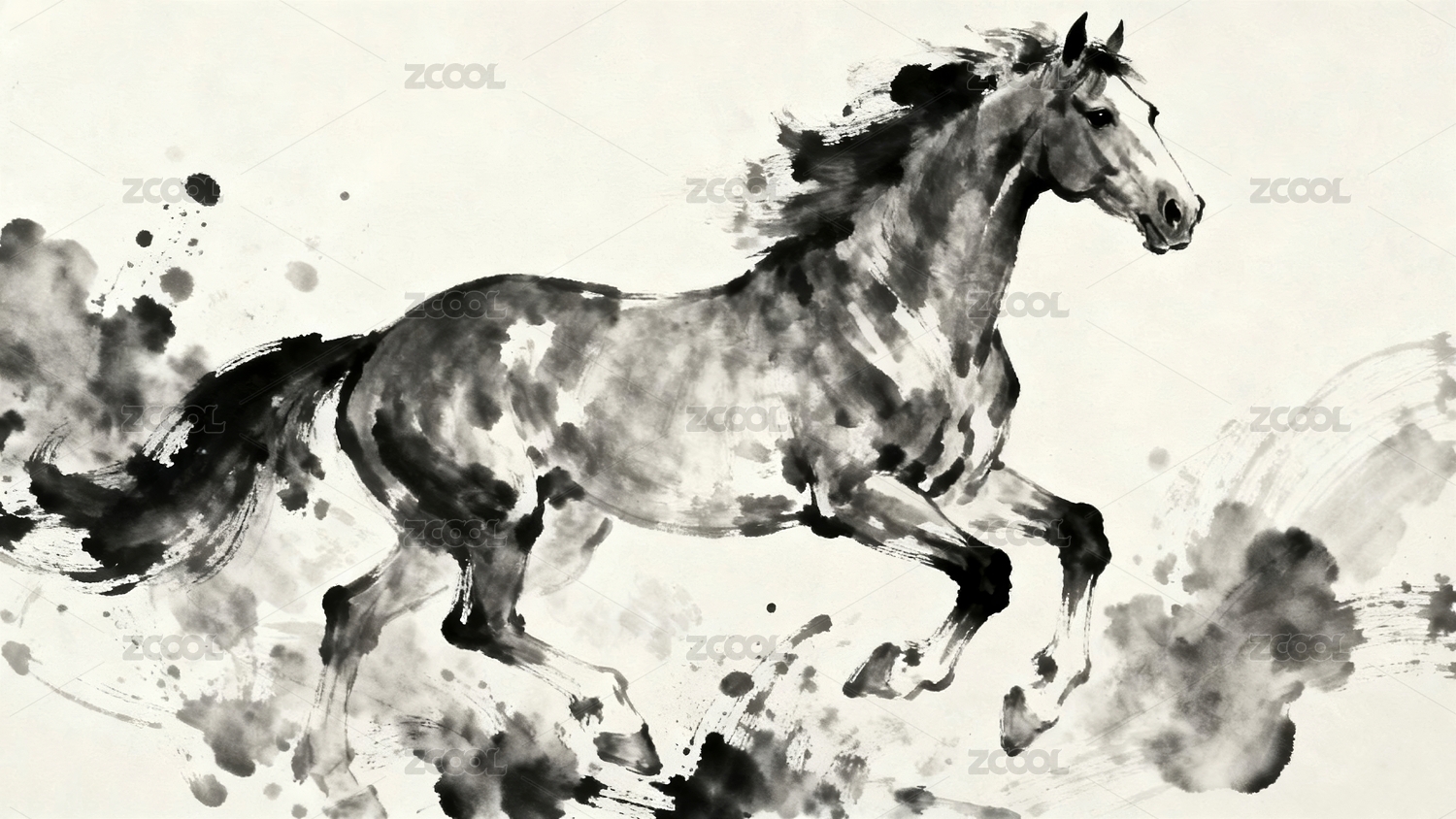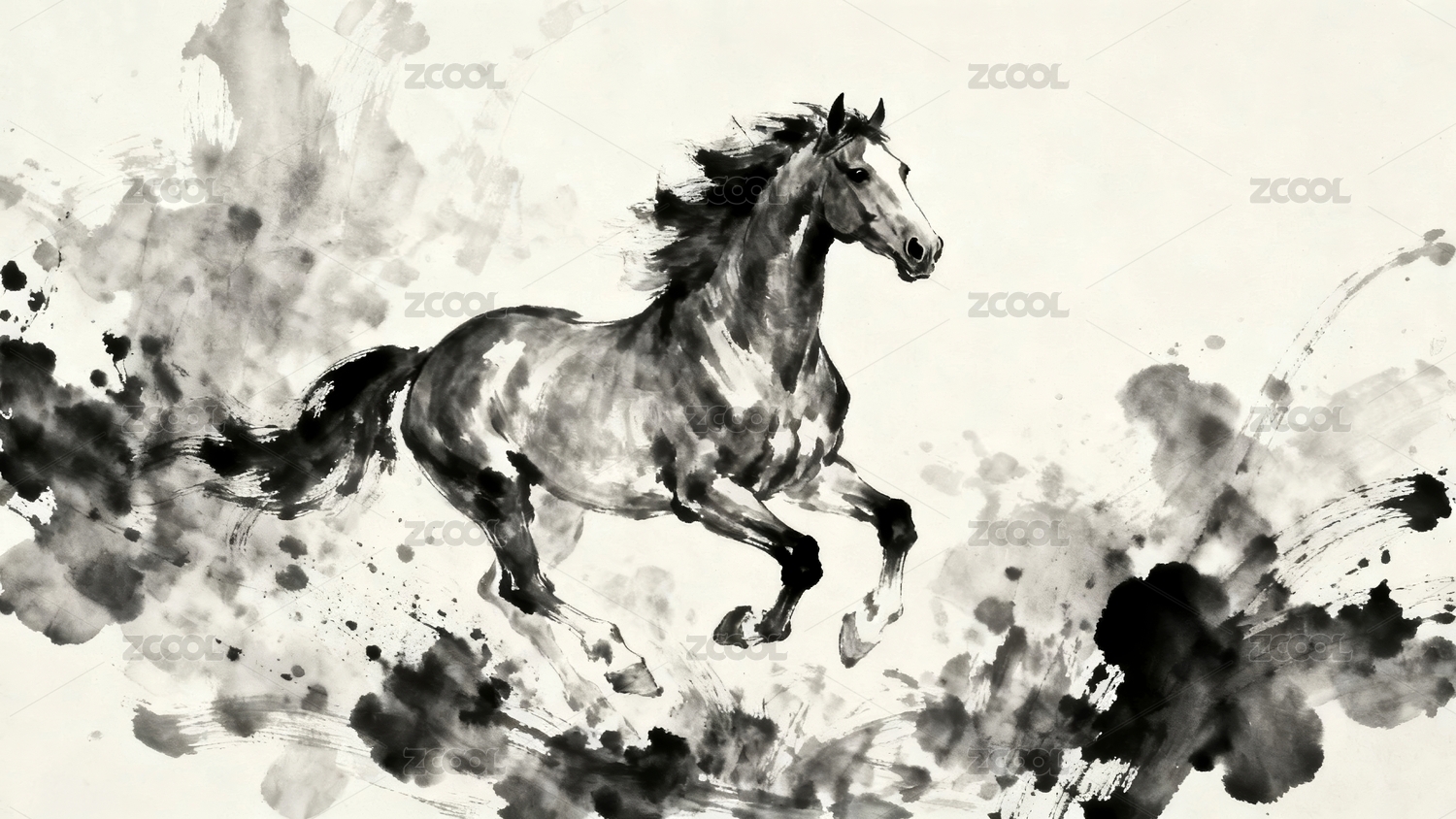 马年,生肖,主视觉,商业,壁纸,奔马,水墨,写意,艺术,创作