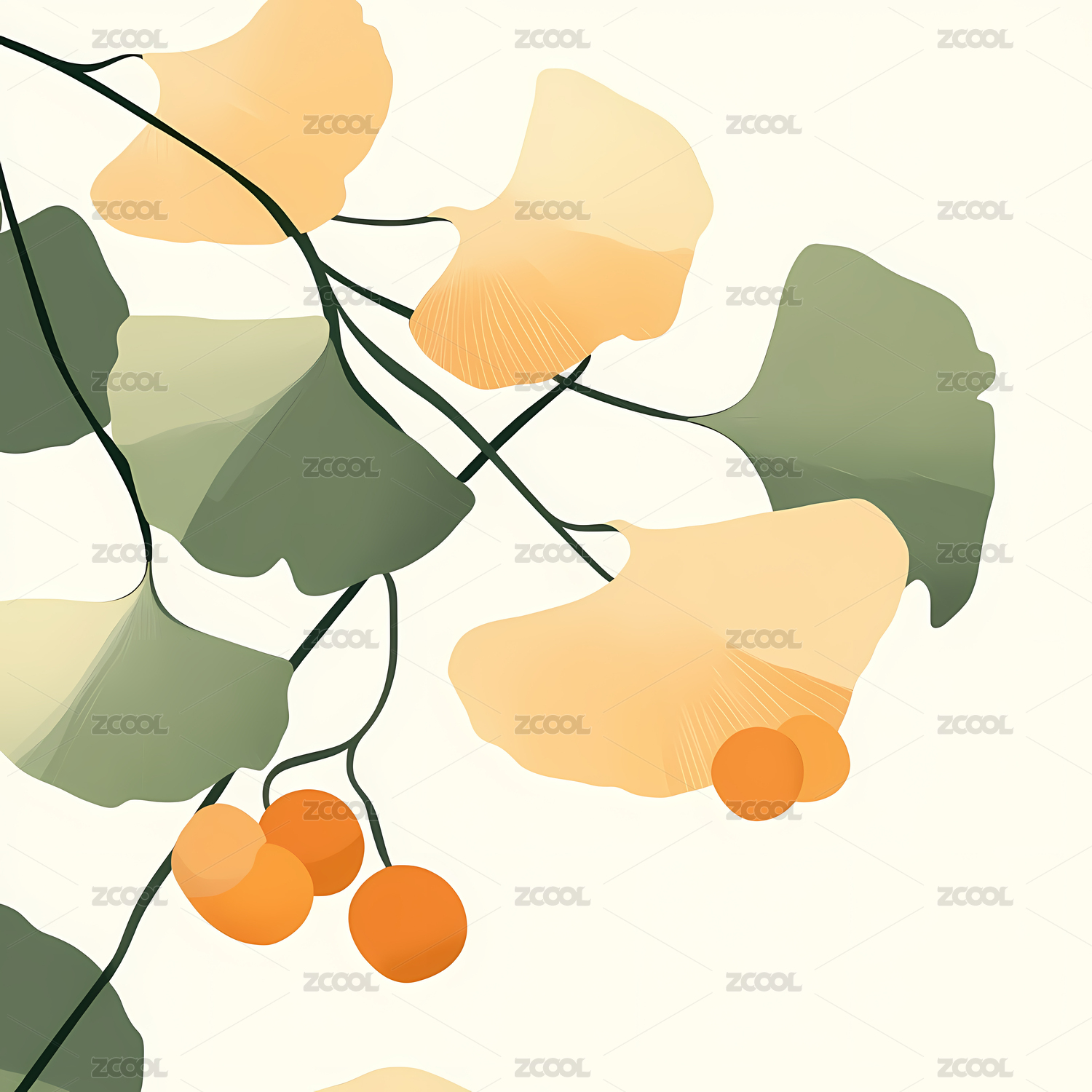 银杏叶艺术插画