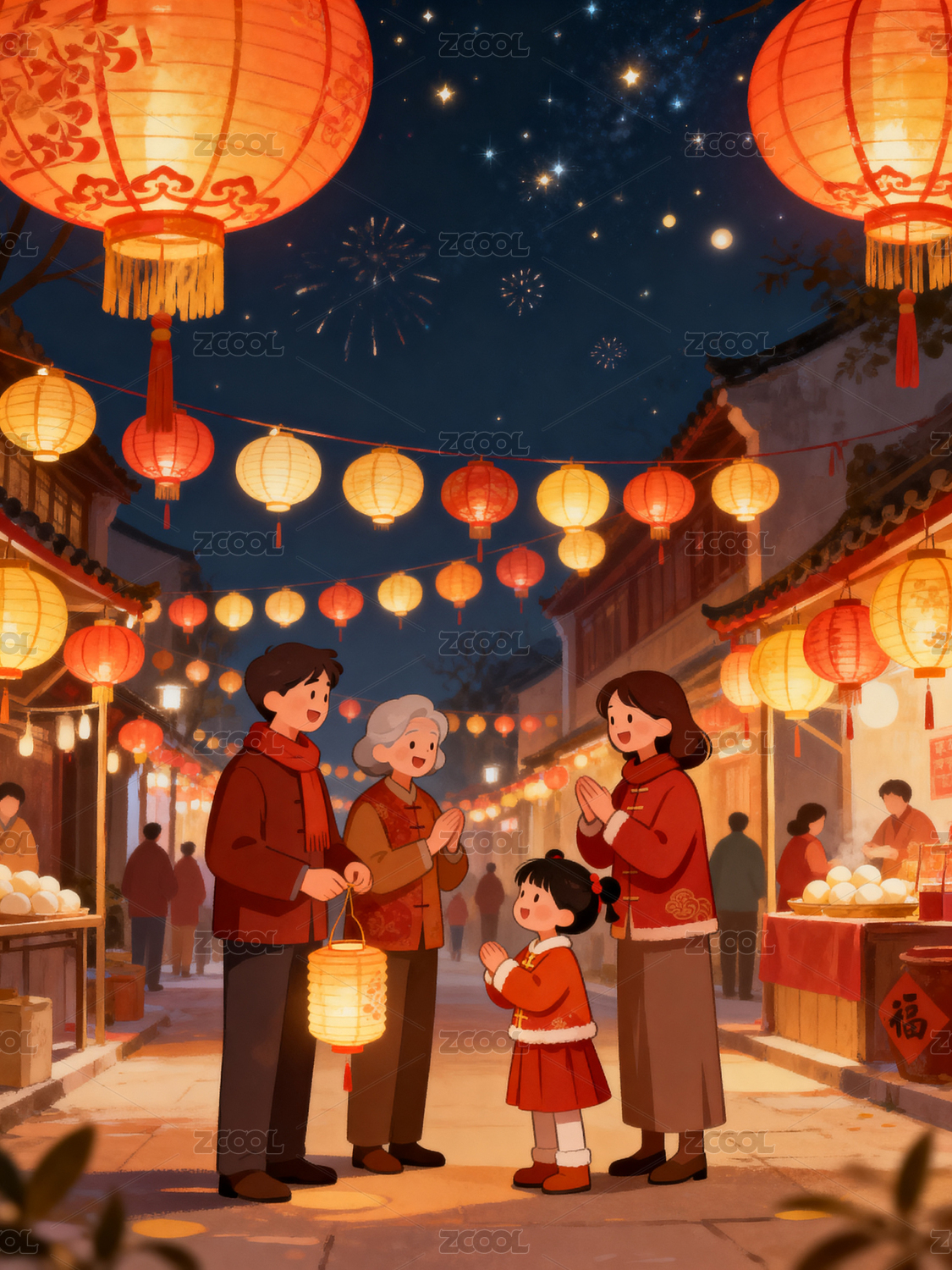春节,过年,传统,文化,插画,喜庆,节日,人们,烟花