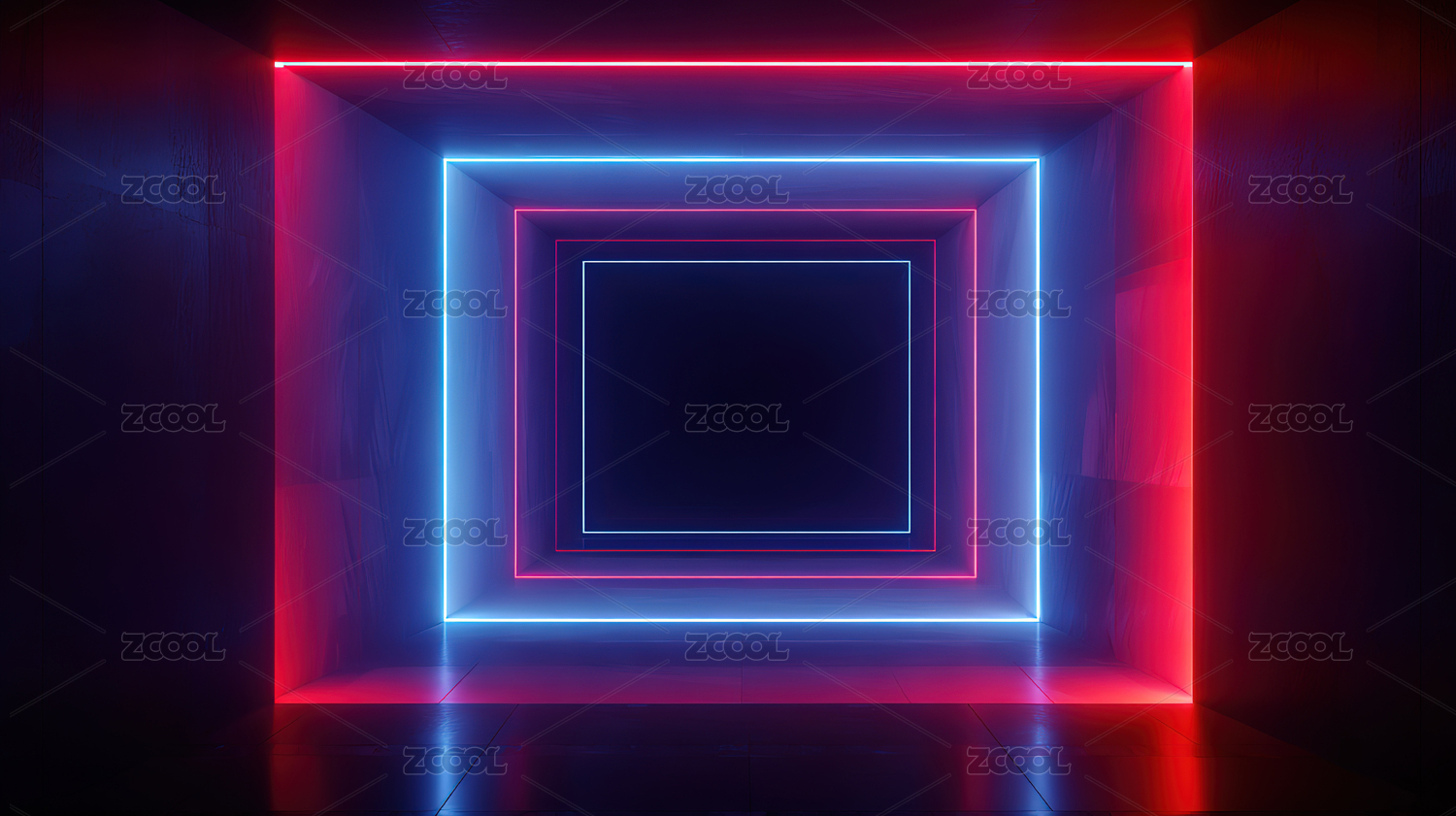 蓝色霓虹方形隧道空间