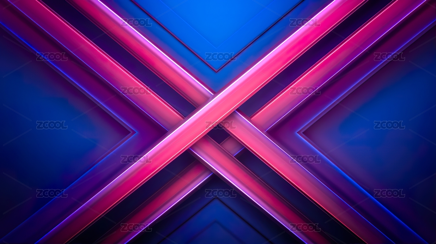 蓝色背景下粉色霓虹灯交叉的光效背景图