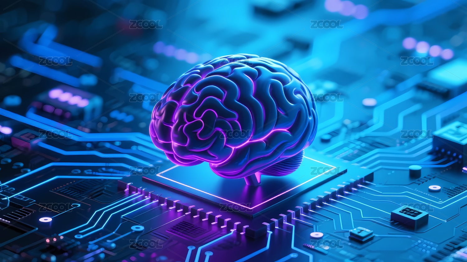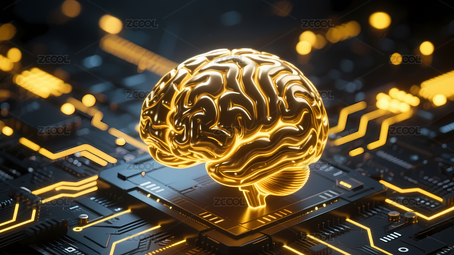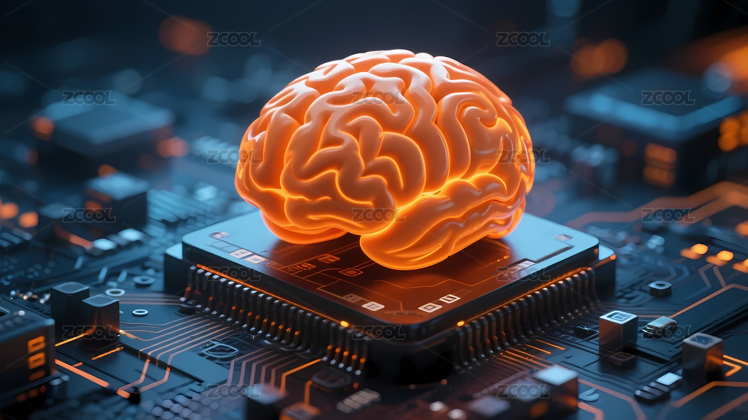 蓝色,发光,科技,黄色,背景,橙色,大脑,电路,智能,模型