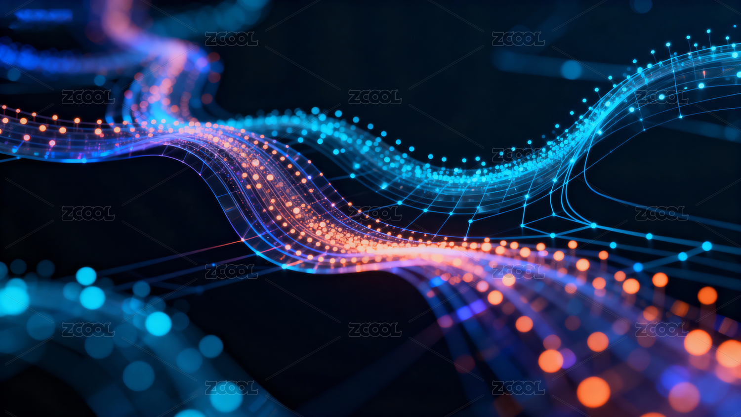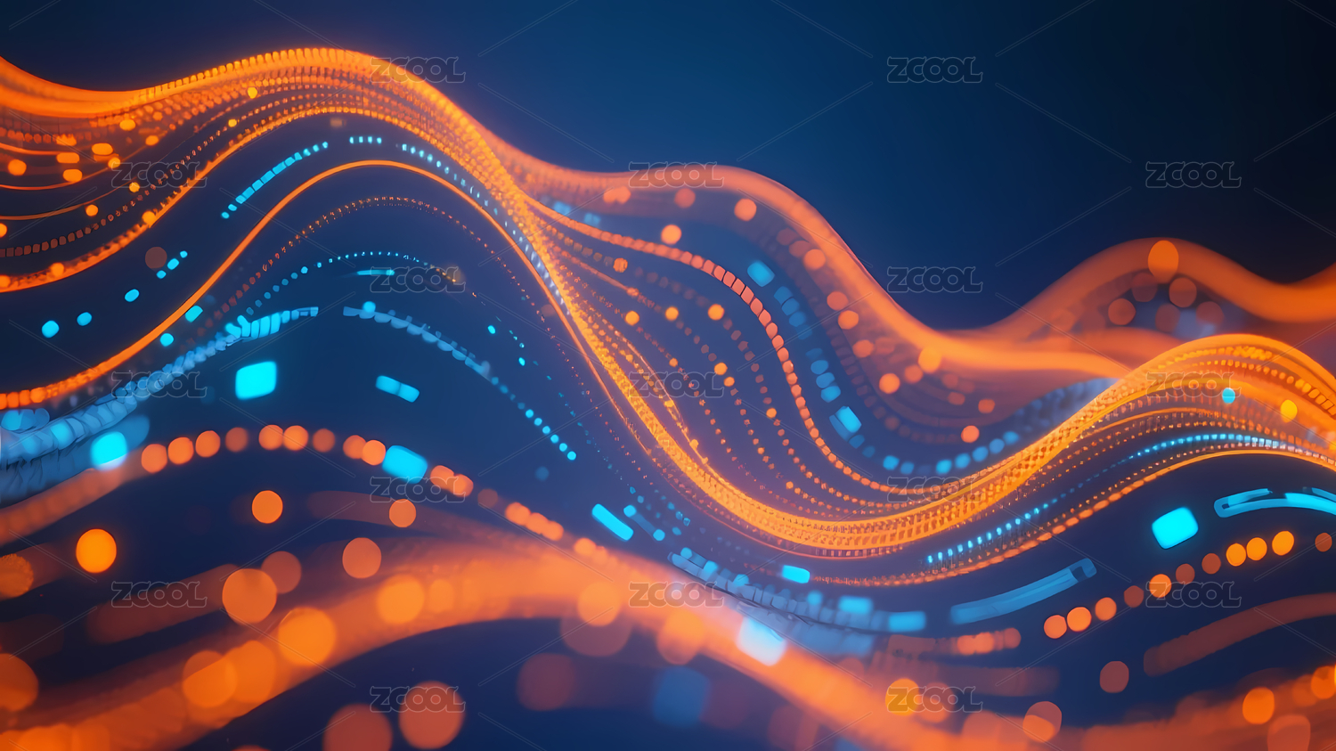 科技,深蓝,背景,波浪,蓝色,光点,动态,橙色,流动,效果