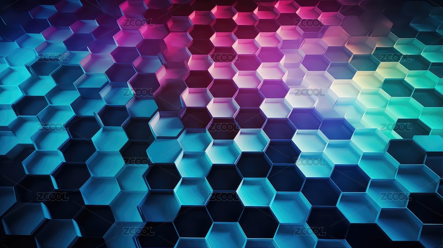 抽象,霓虹,几何,科技,背景,发光,未来,六边形,网格,光效