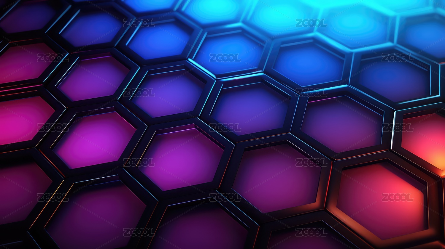 霓虹色调的科技感蜂窝网格背景