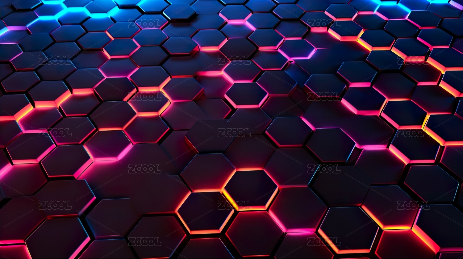 霓虹光效下的蜂窝状立体背景