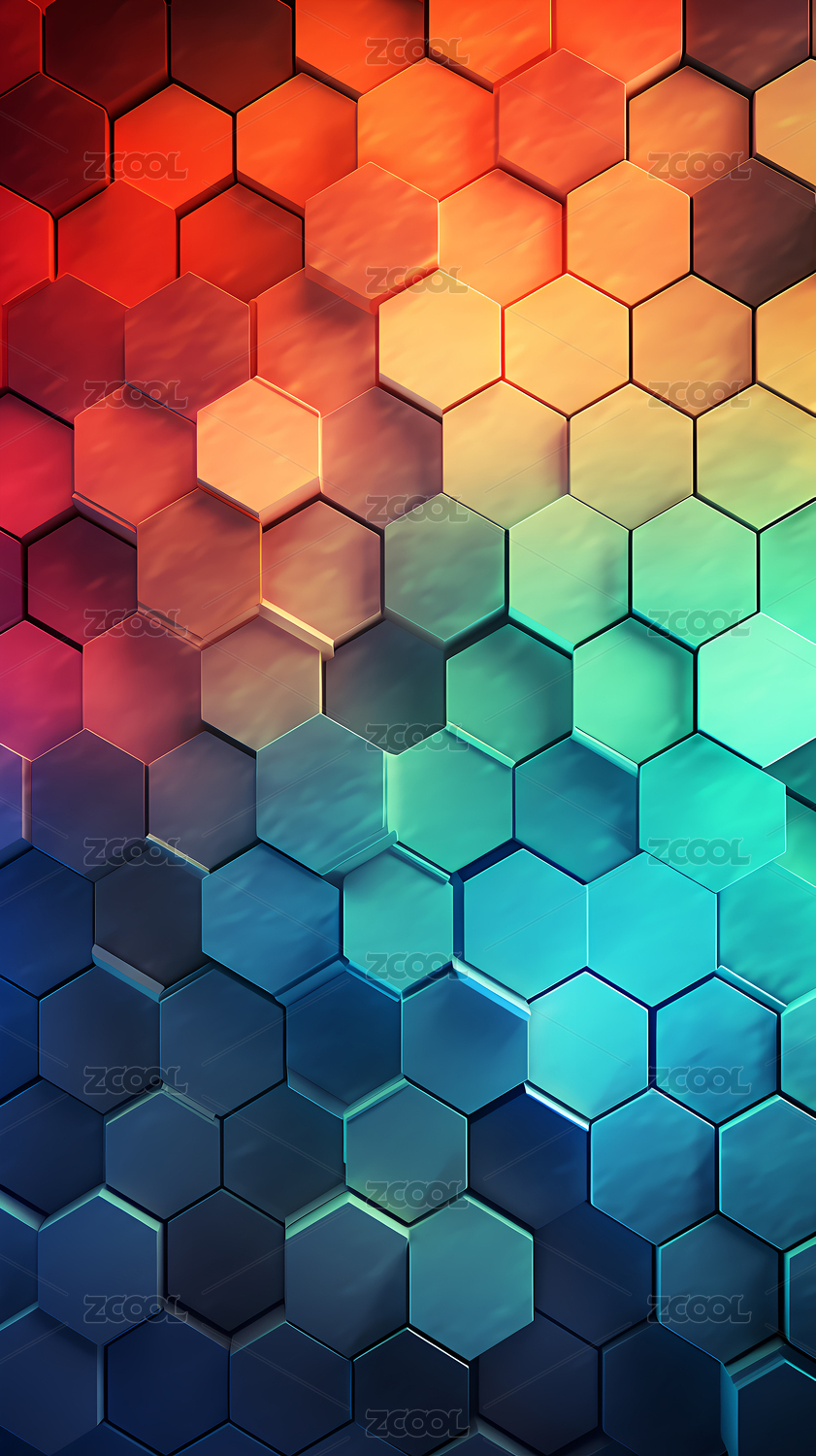 渐变色六边形几何图案