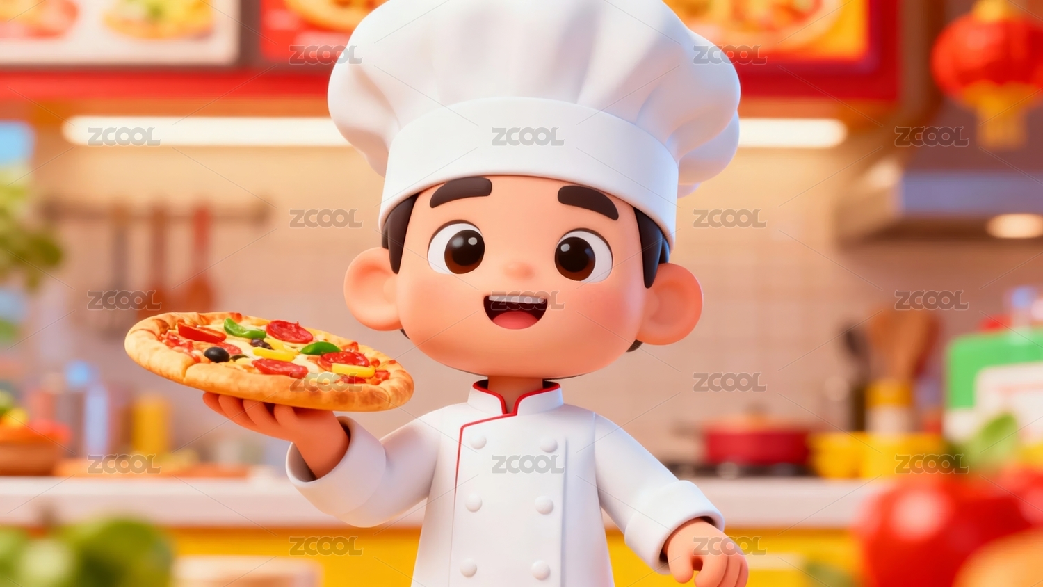 卡通厨师手持披萨