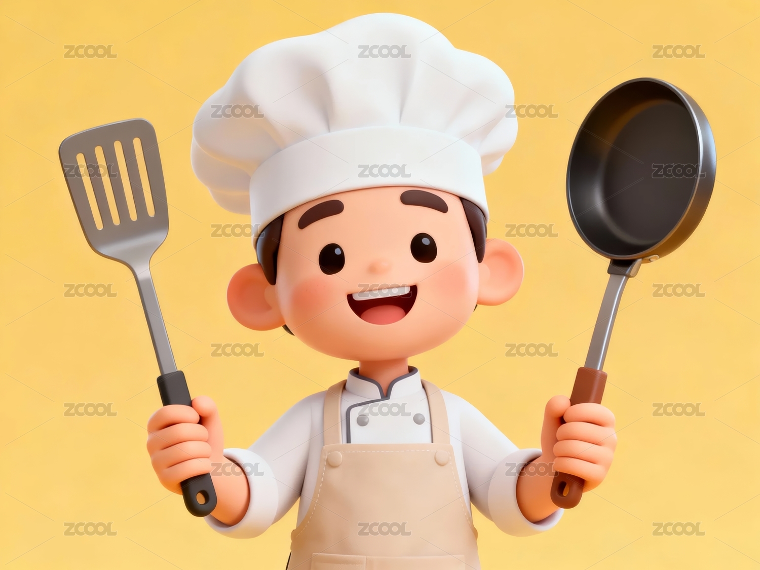 卡通厨师手持锅铲