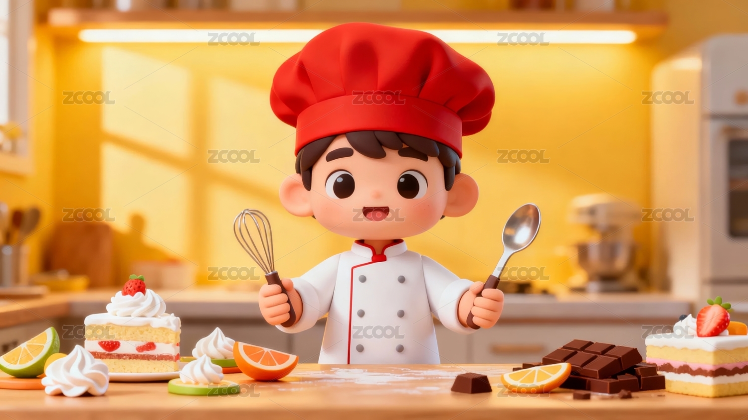 卡通厨师制作甜点