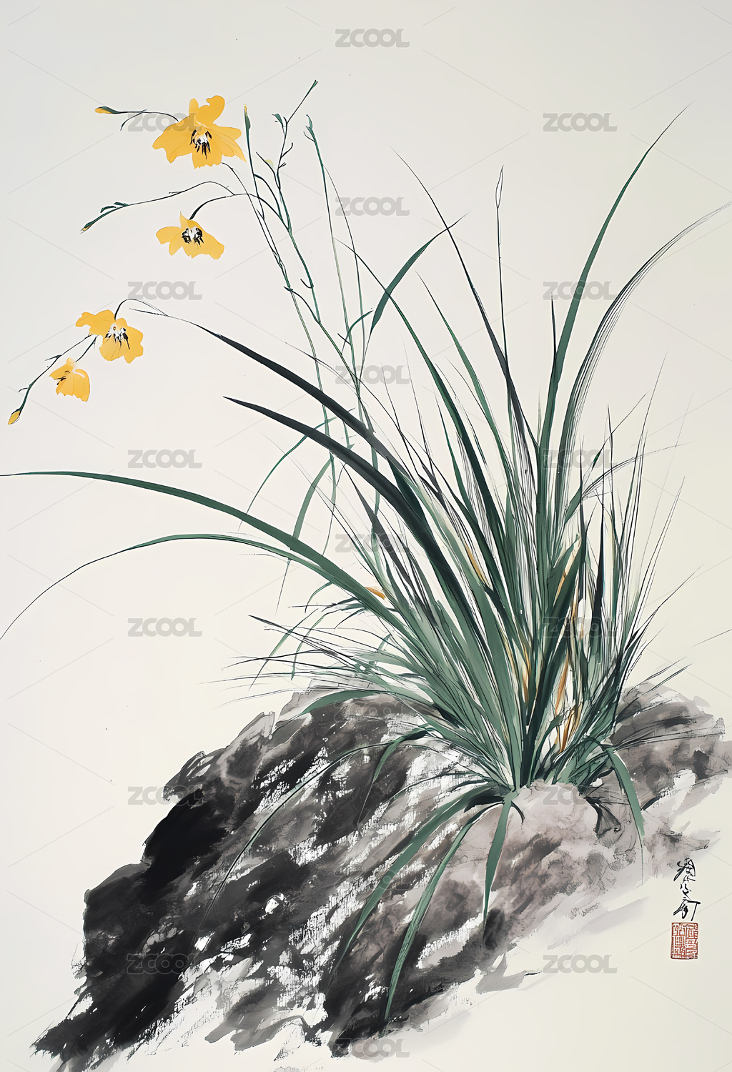 艺术,传统,线条,花朵,中国风,兰花,墨迹,枝叶,水墨,绘画