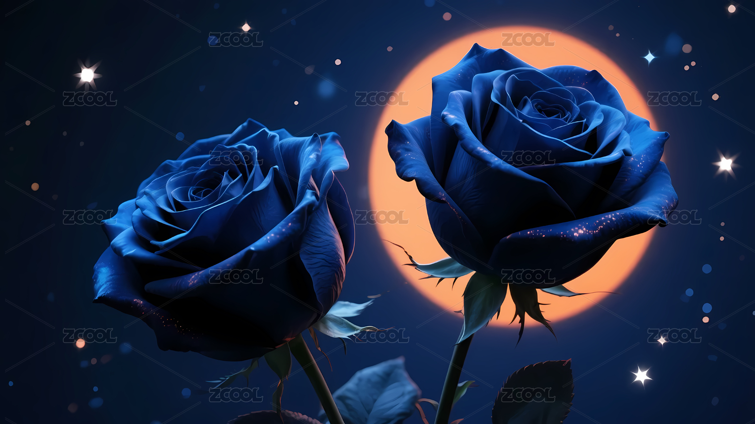 深蓝,夜空,柔和,梦幻,唯美,自然,静谧,点缀,浪漫,蓝玫瑰