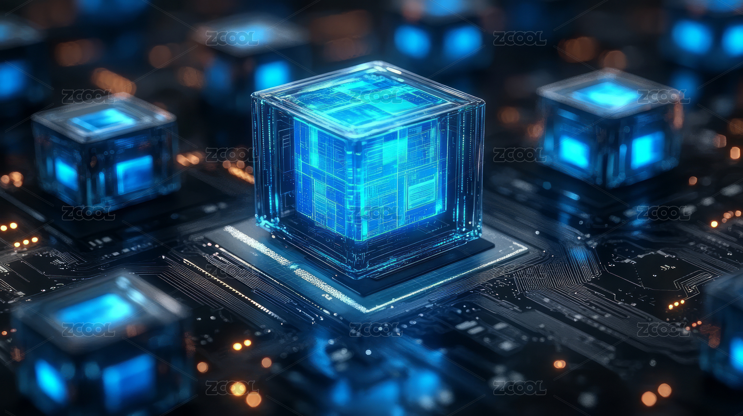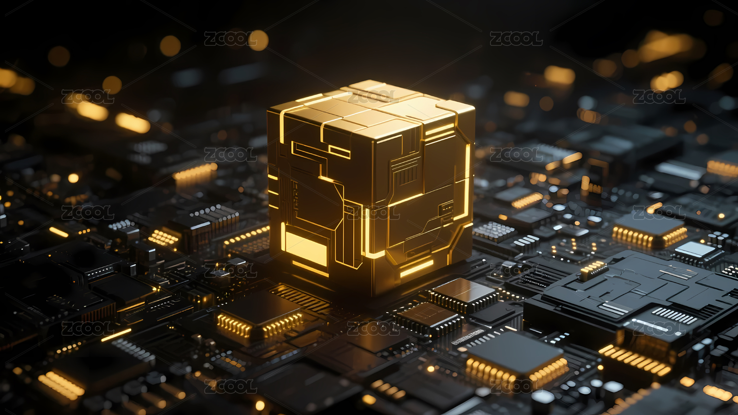 神秘,深蓝,立方体,蓝色,发光,创新,科技,光效,未来,金色
