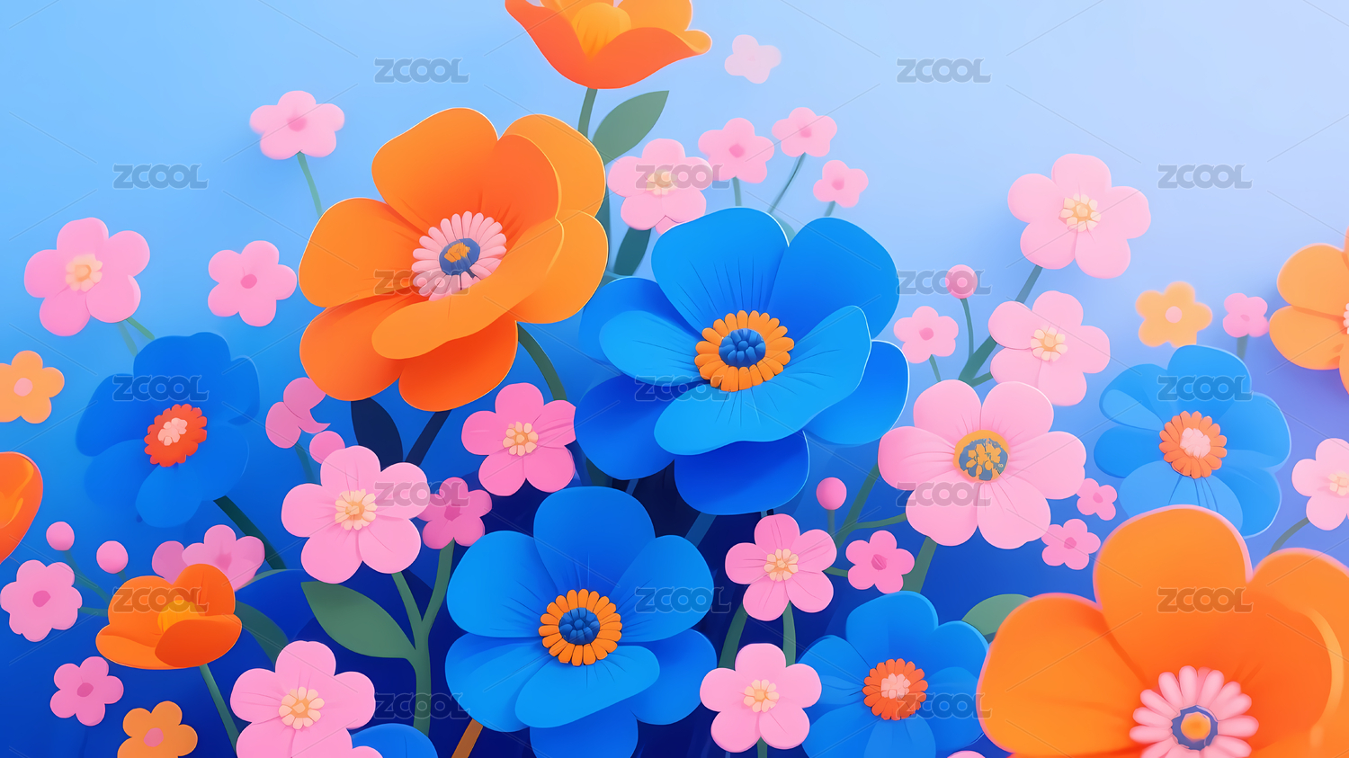 蓝色渐变多彩花朵