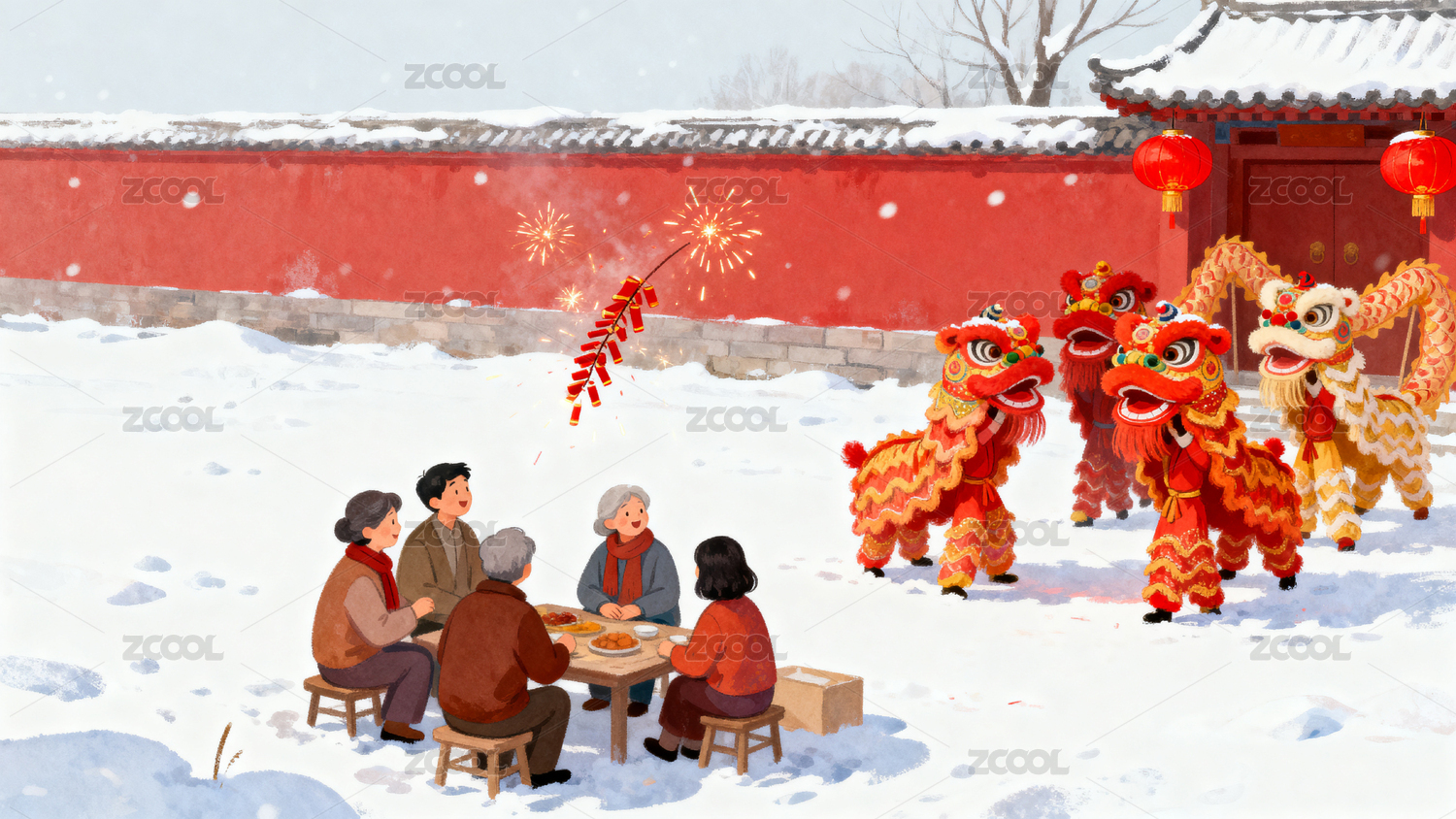 雪中舞狮团圆饭