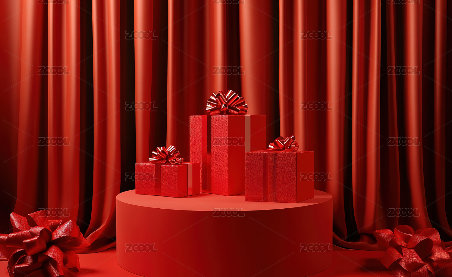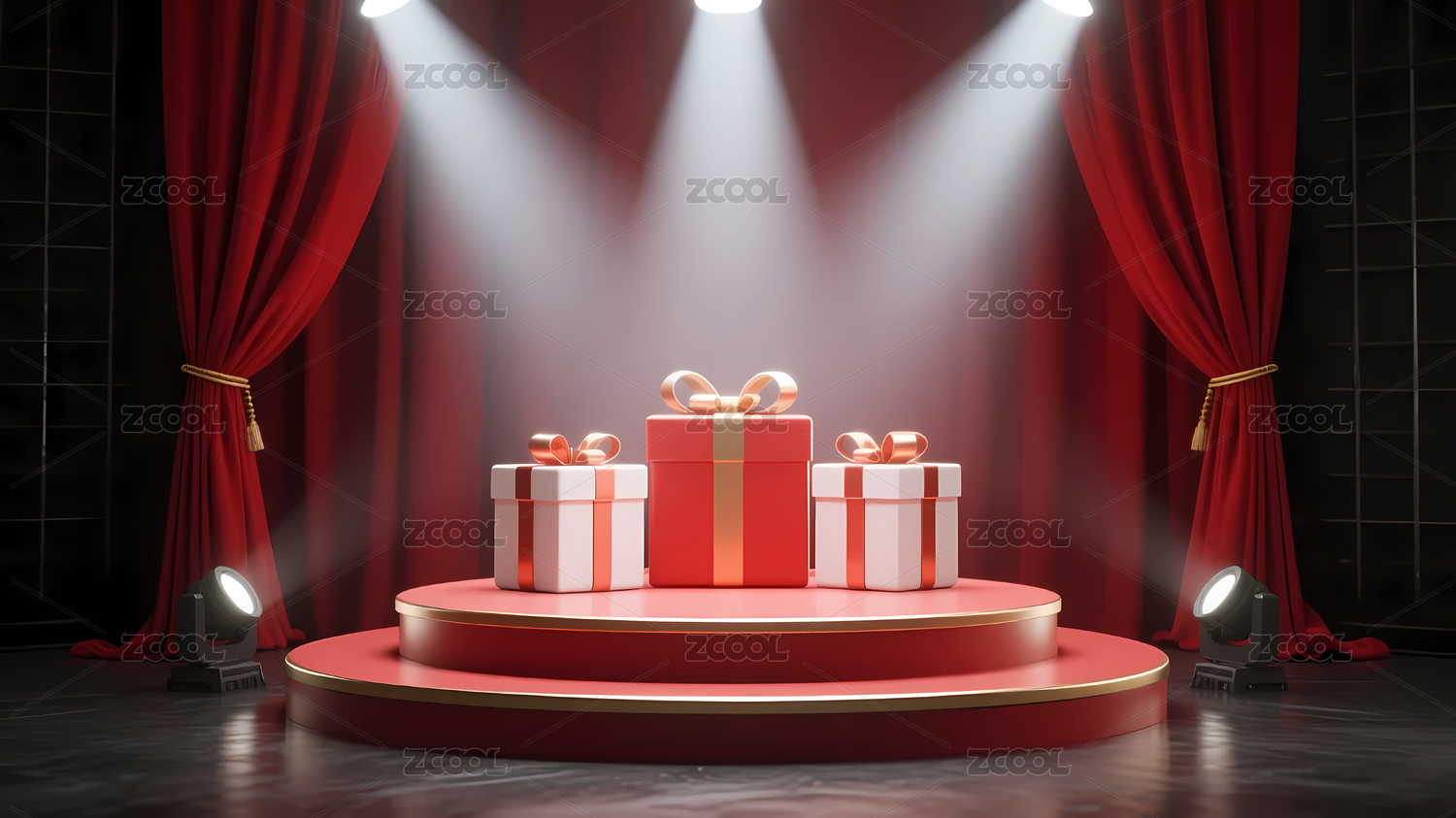 红色礼盒与聚光灯的庆典氛围