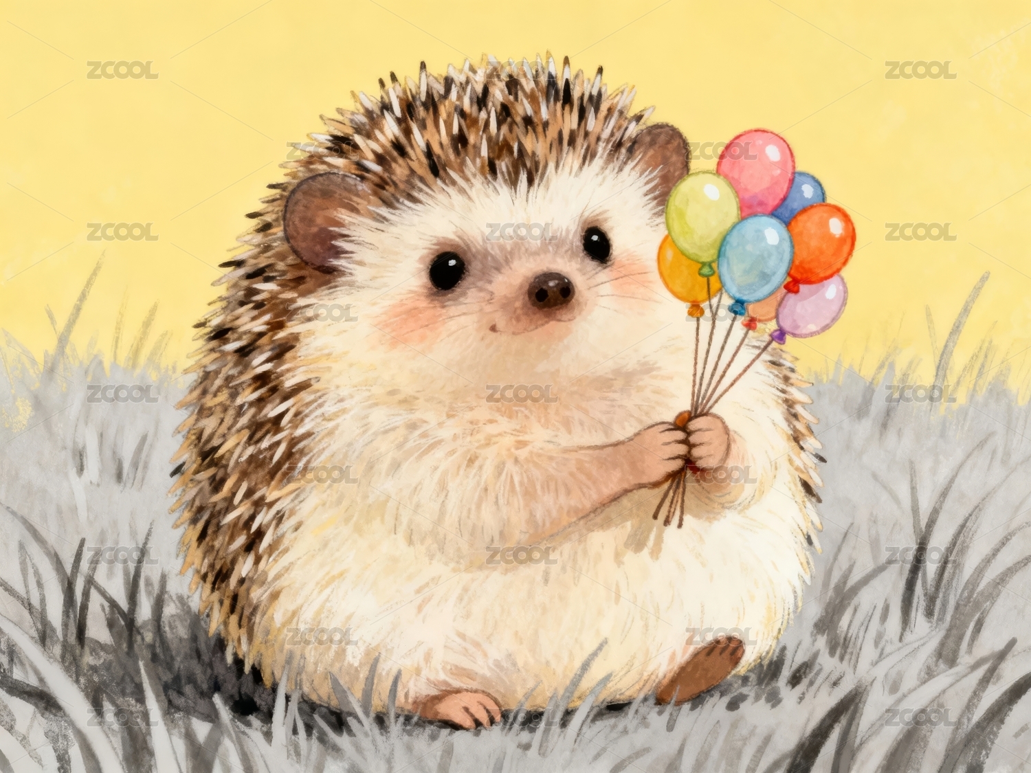 刺猬可爱唯美野生动物3D卡通插画壁纸