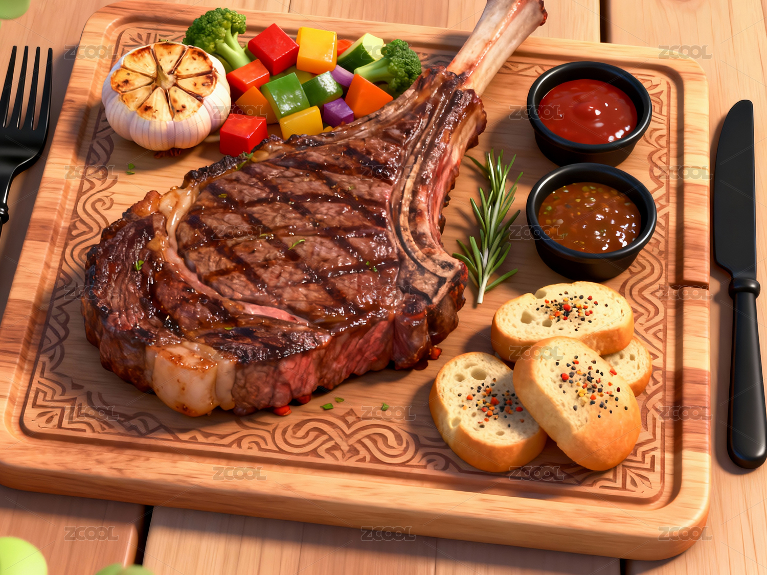 牛排烤肉配菜面包
