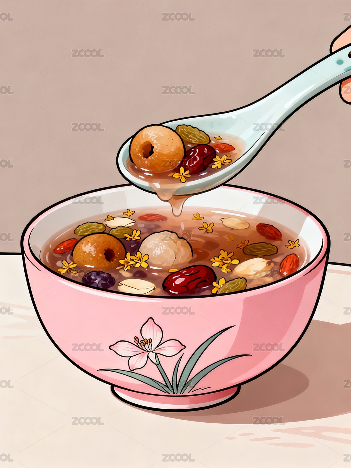 碗,食物,白色,边缘,勺子,甜品,圆形,食材,粉色,花纹