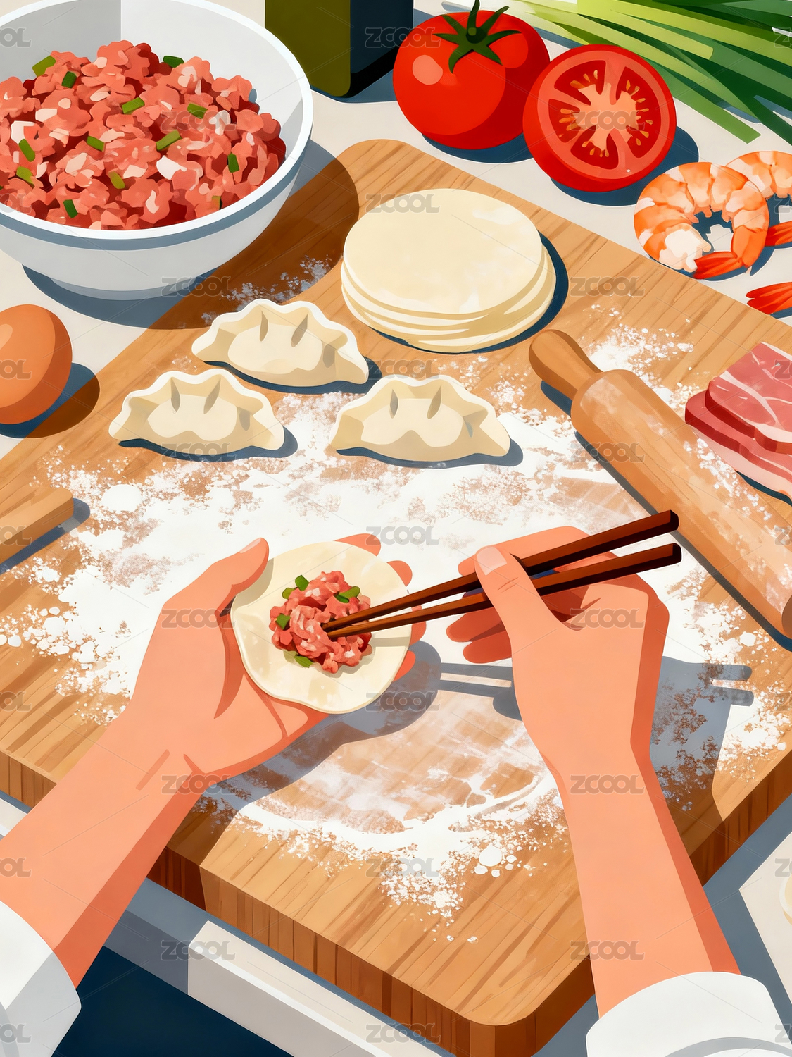 盘子,食物,摆盘,烹饪,厨房,木板,桌面,馅料,白色,准备