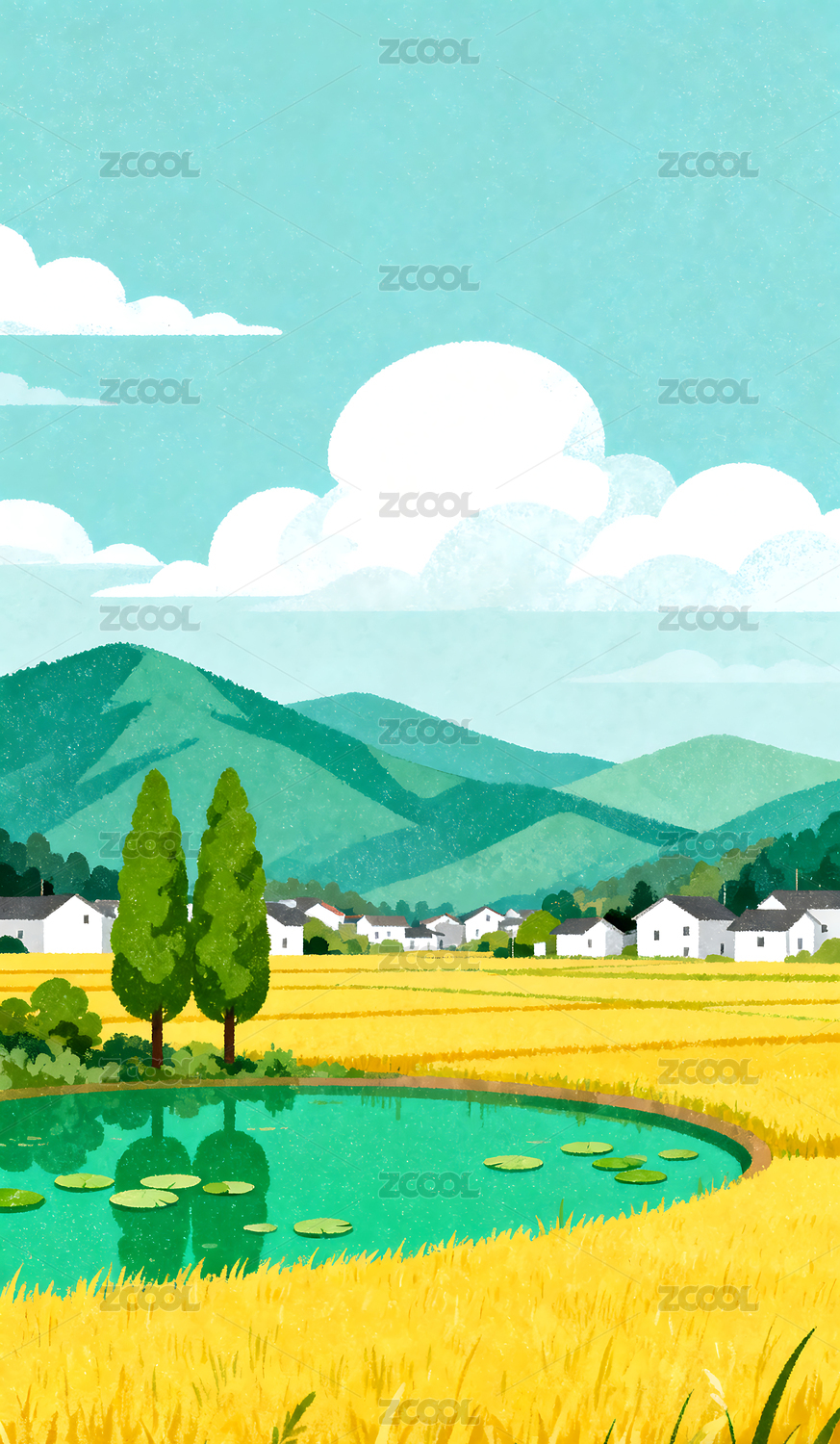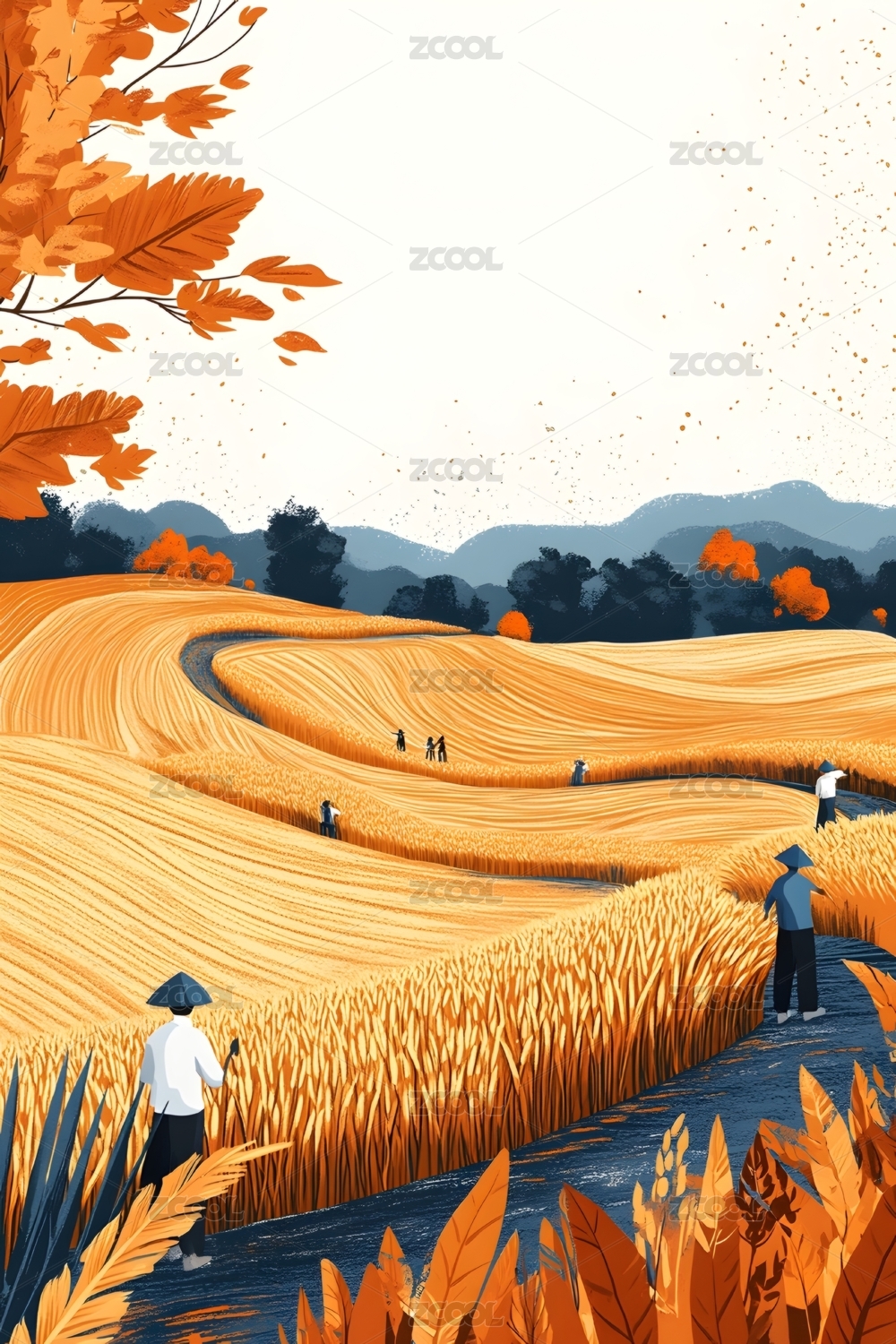 金色稻田里的丰收景象 田园牧歌般的乡村风