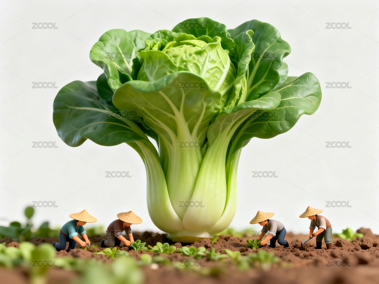 大白菜与劳作人物
