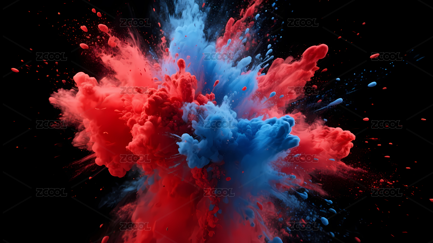 蓝色与红色的液体碰撞和色彩斑斓的液体流动