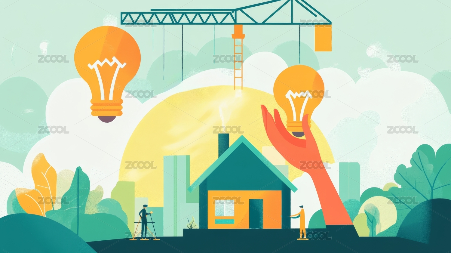 灯泡,建筑,创意,家园,建设,起重机,城市,房子,绿色,创新