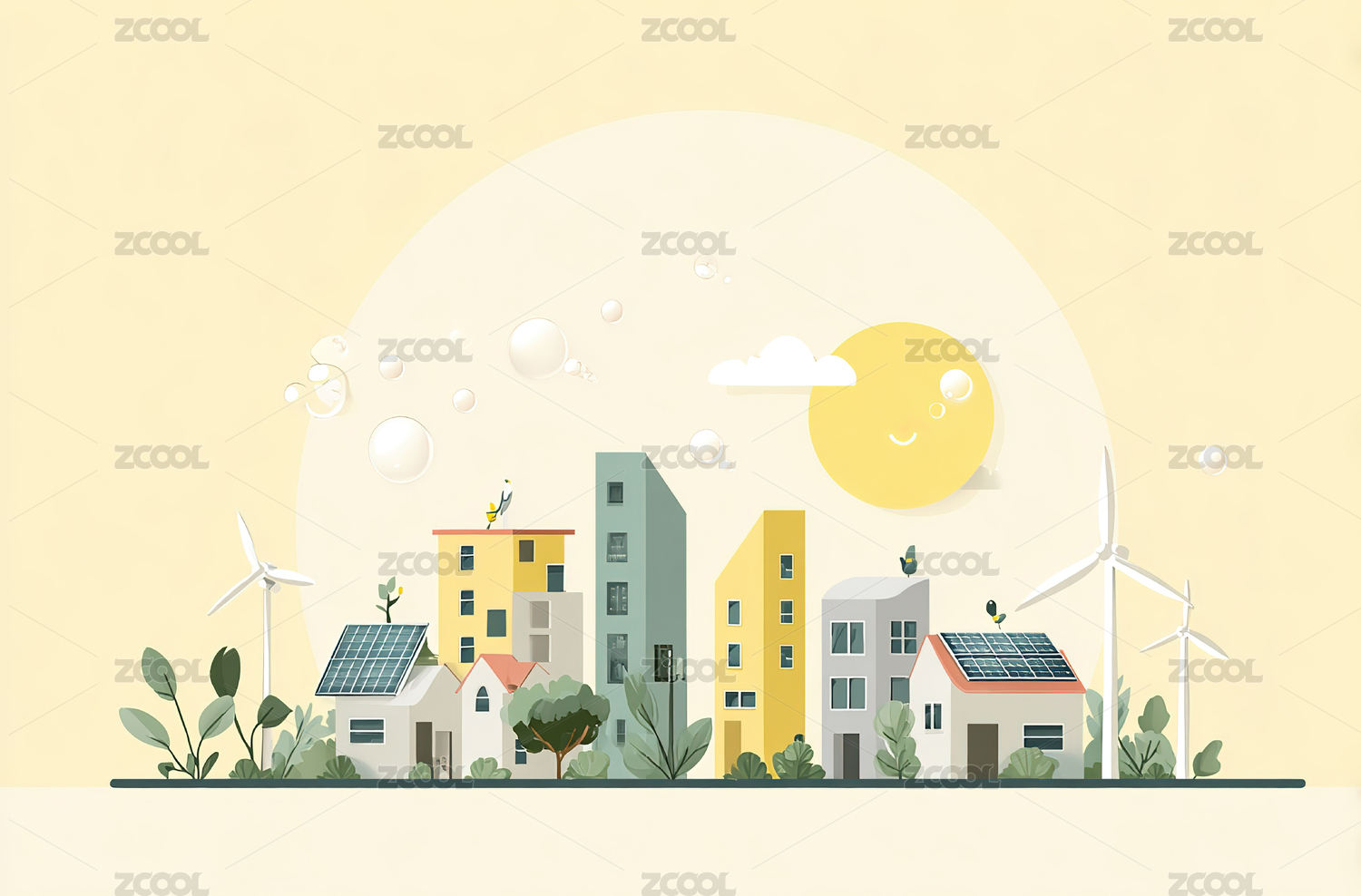 环保插画,新能源风能,呵护绿色可持续发展