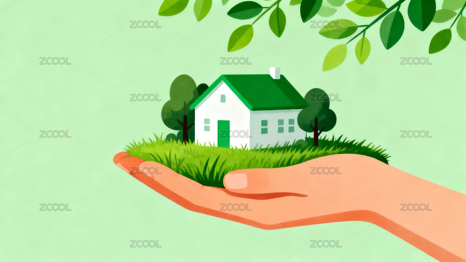 手掌托举绿色家园场景