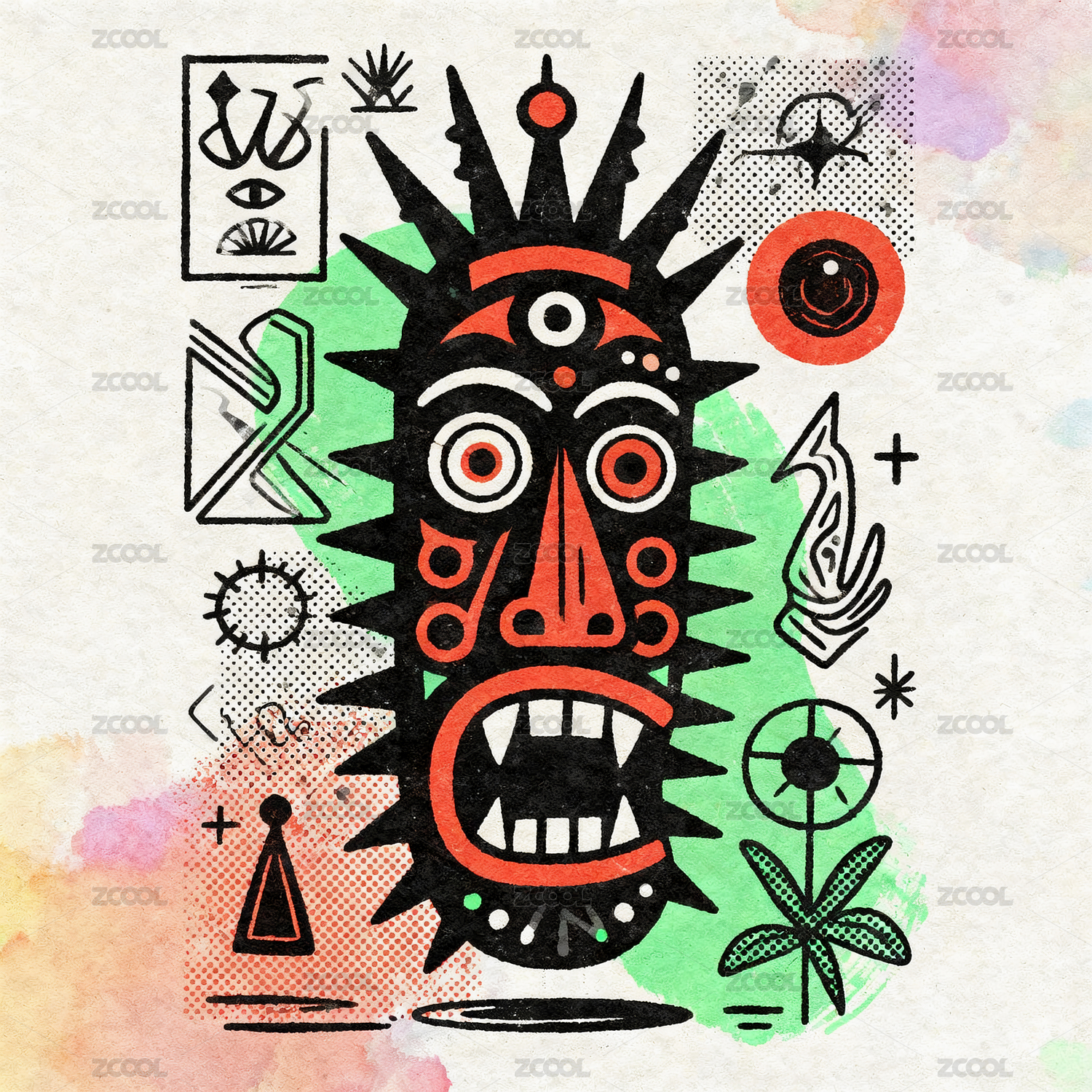 抽象,插画,艺术,线条,超现实,图案,潮流,时尚,脸谱