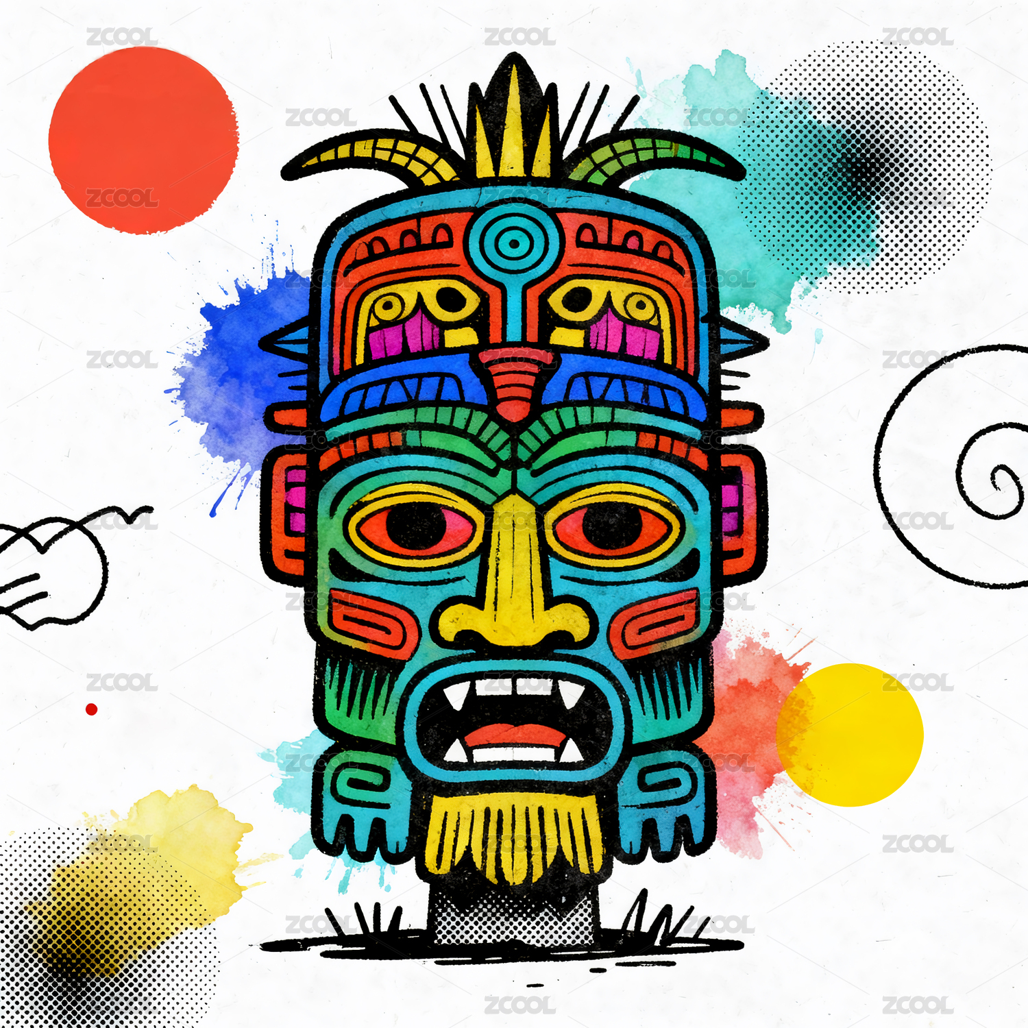 多彩的部落图腾面具插画元素
