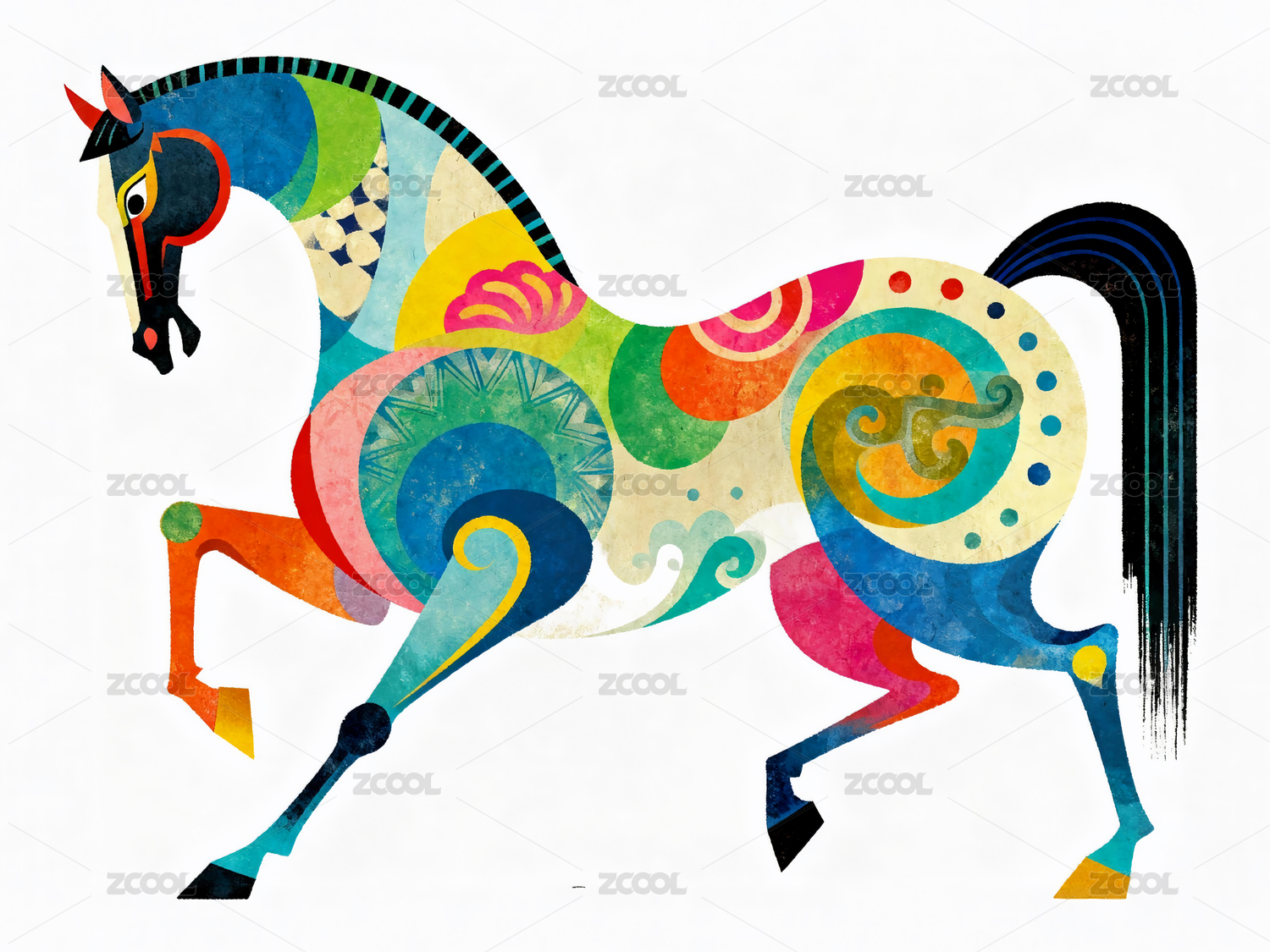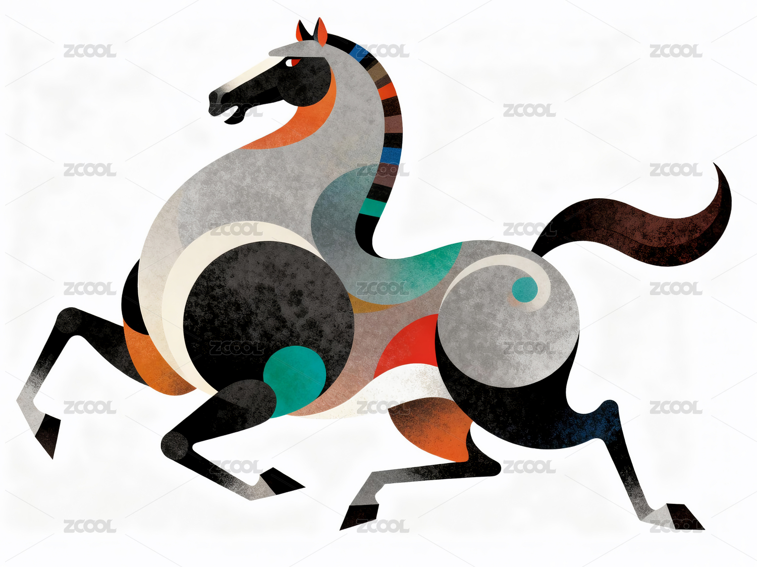 国风,国潮,插画,绘画,艺术,超现实,抽象,马,马年,生肖