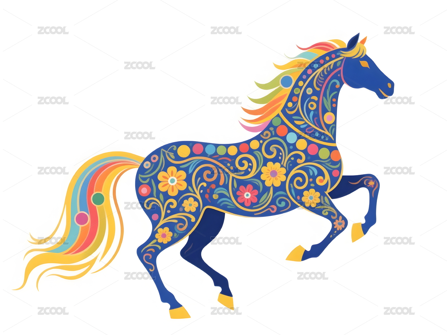 国风生肖插画马图案花纹底纹艺术