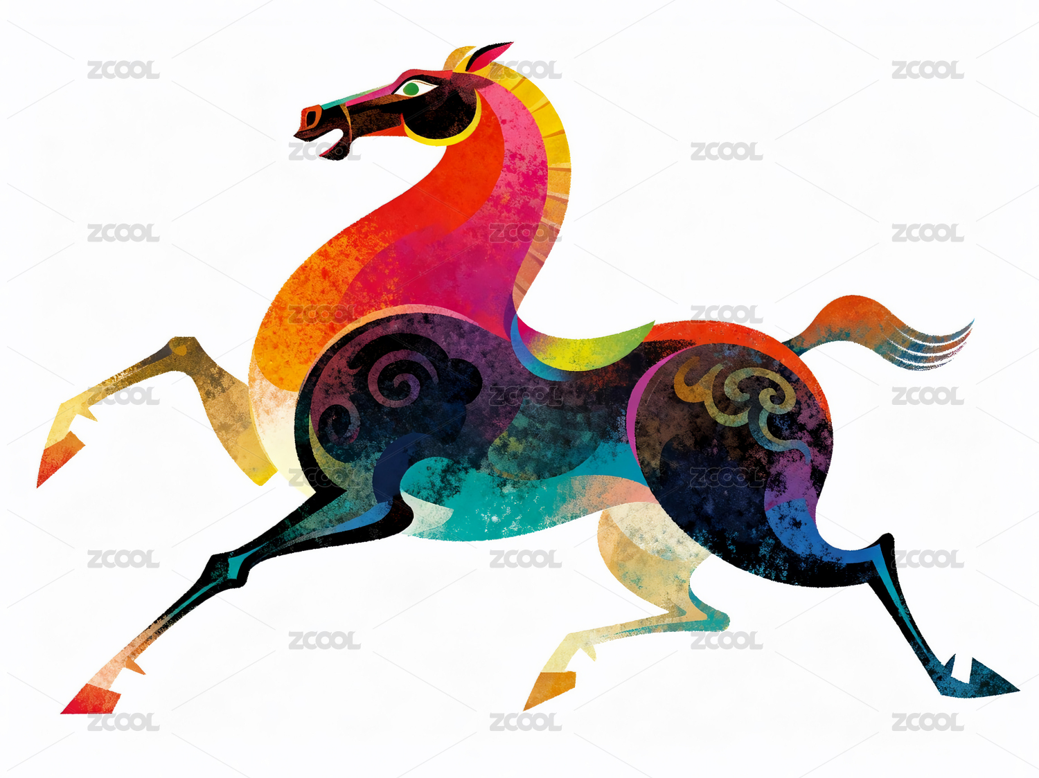 国风,国潮,插画,绘画,艺术,超现实,抽象,马,马年,生肖