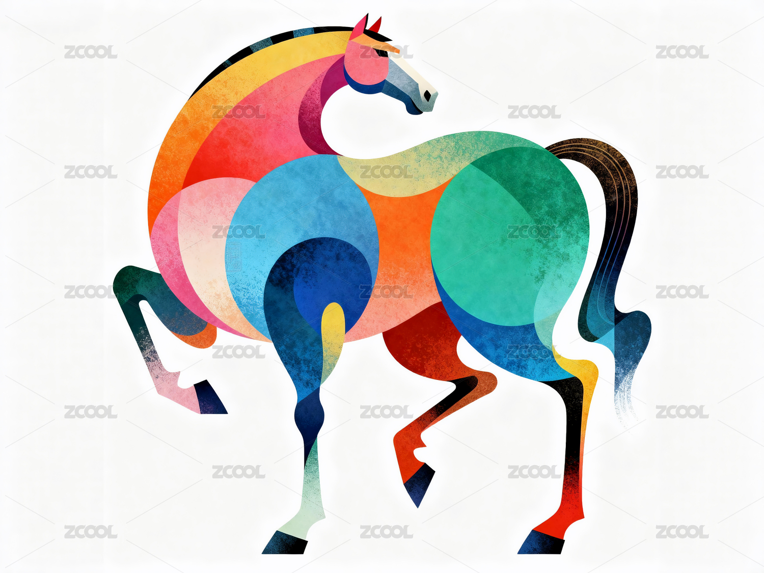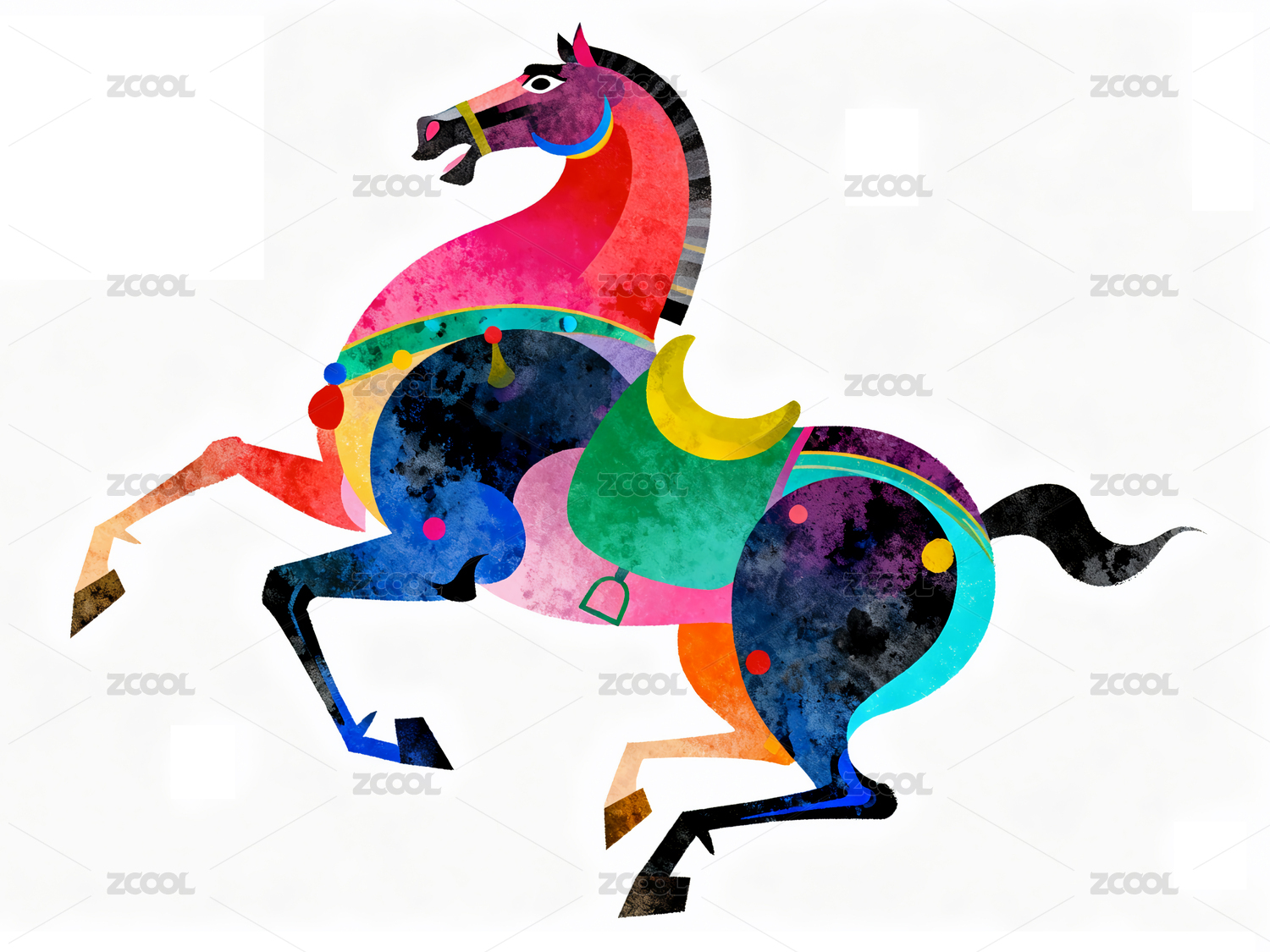 国风,国潮,插画,绘画,艺术,超现实,抽象,马,马年,生肖
