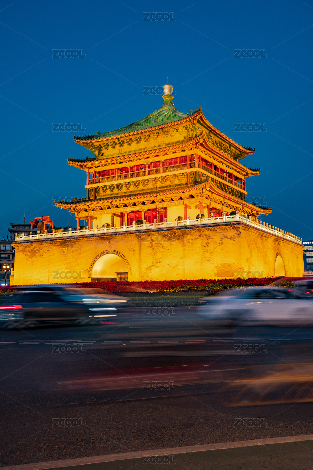 西安市地标建筑钟楼的夜景