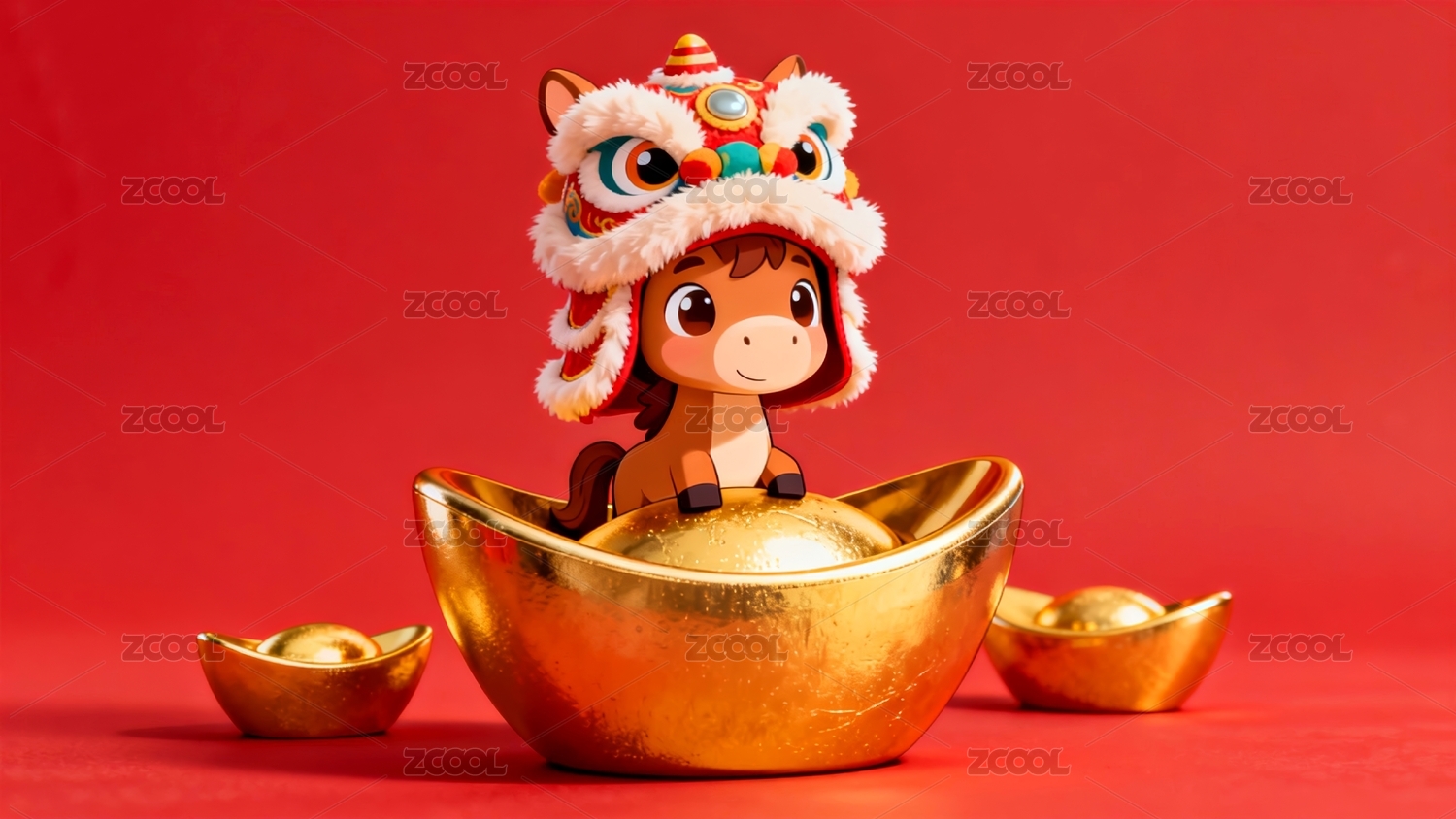 春节,金马,元宝,红色背景,灯笼,梅花枝,金色,喜庆,贺岁,新年