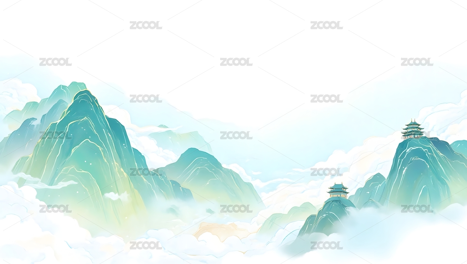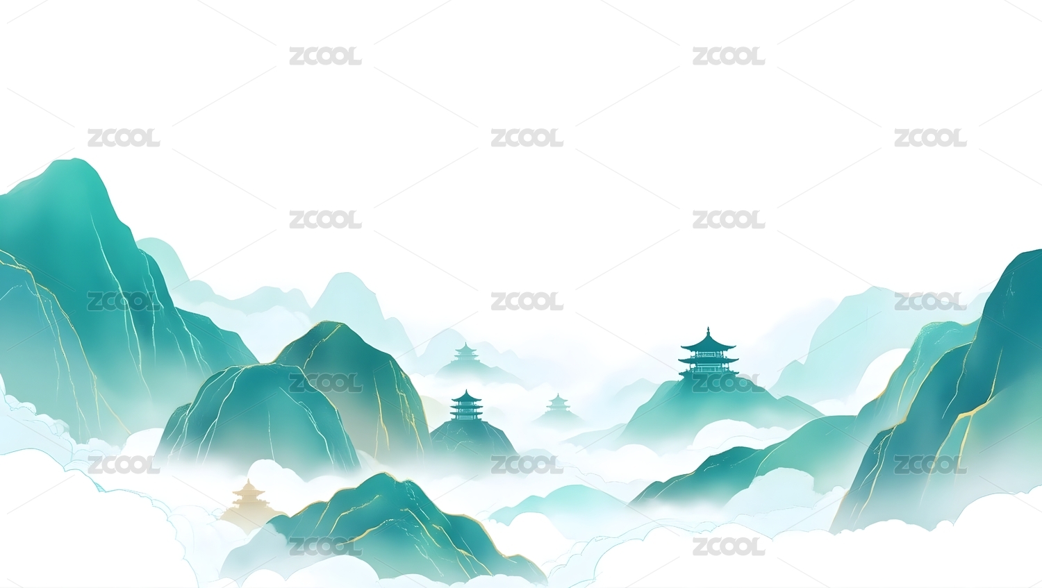 线条,金色,色彩,天空,绿树,静谧,蓝天,白云,远山,山峰