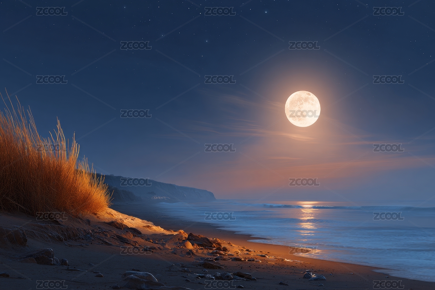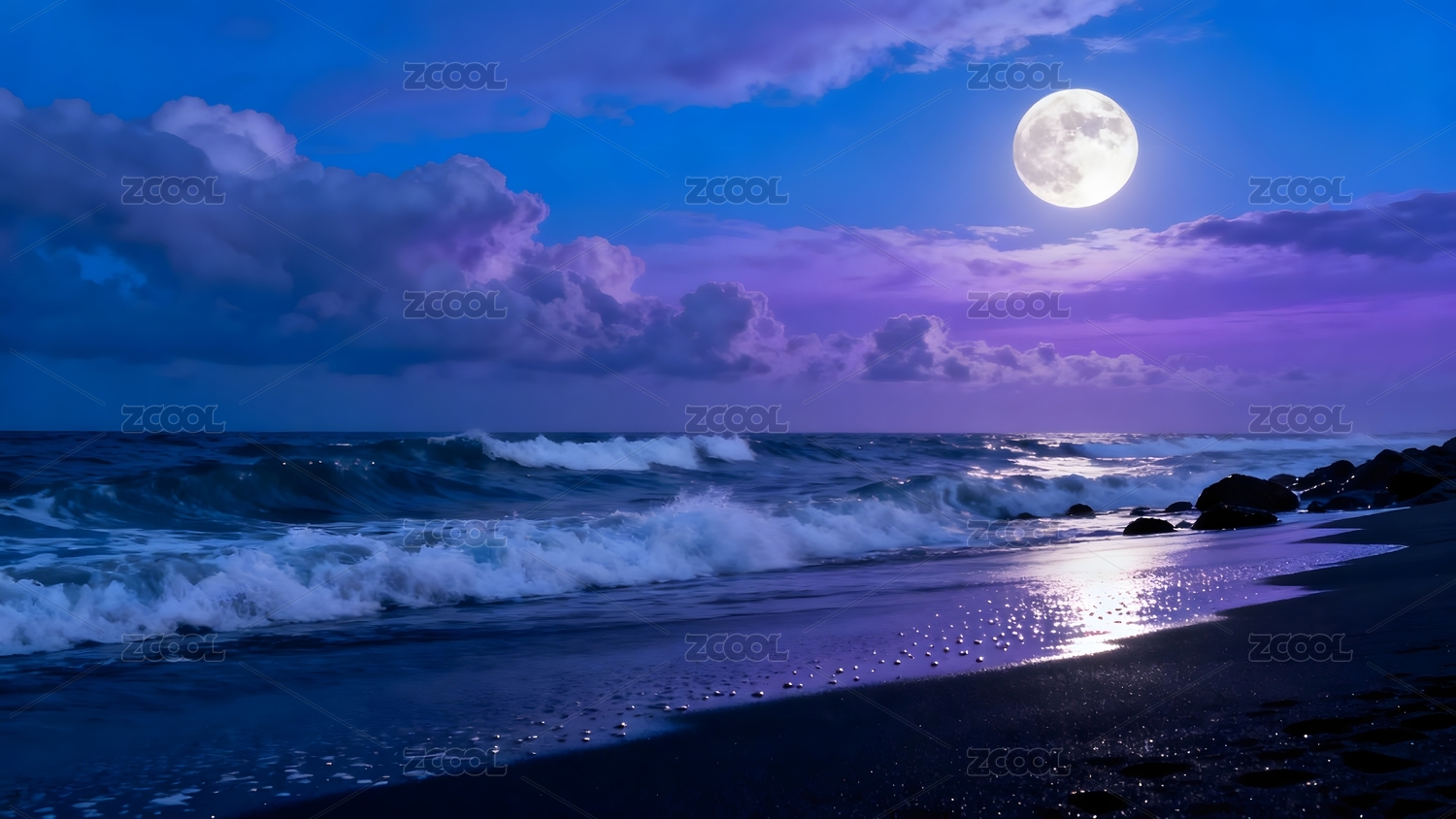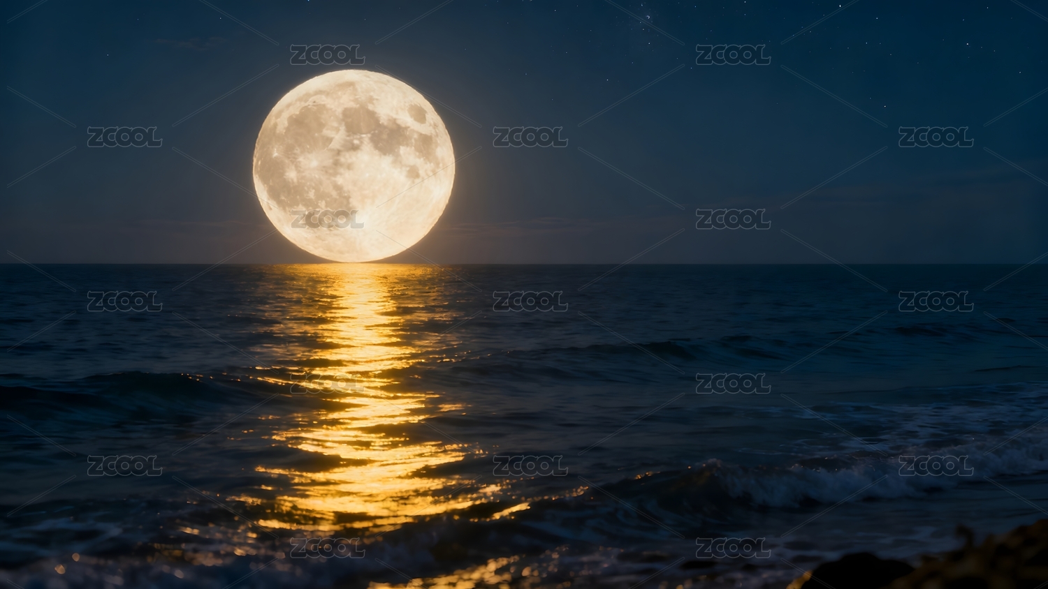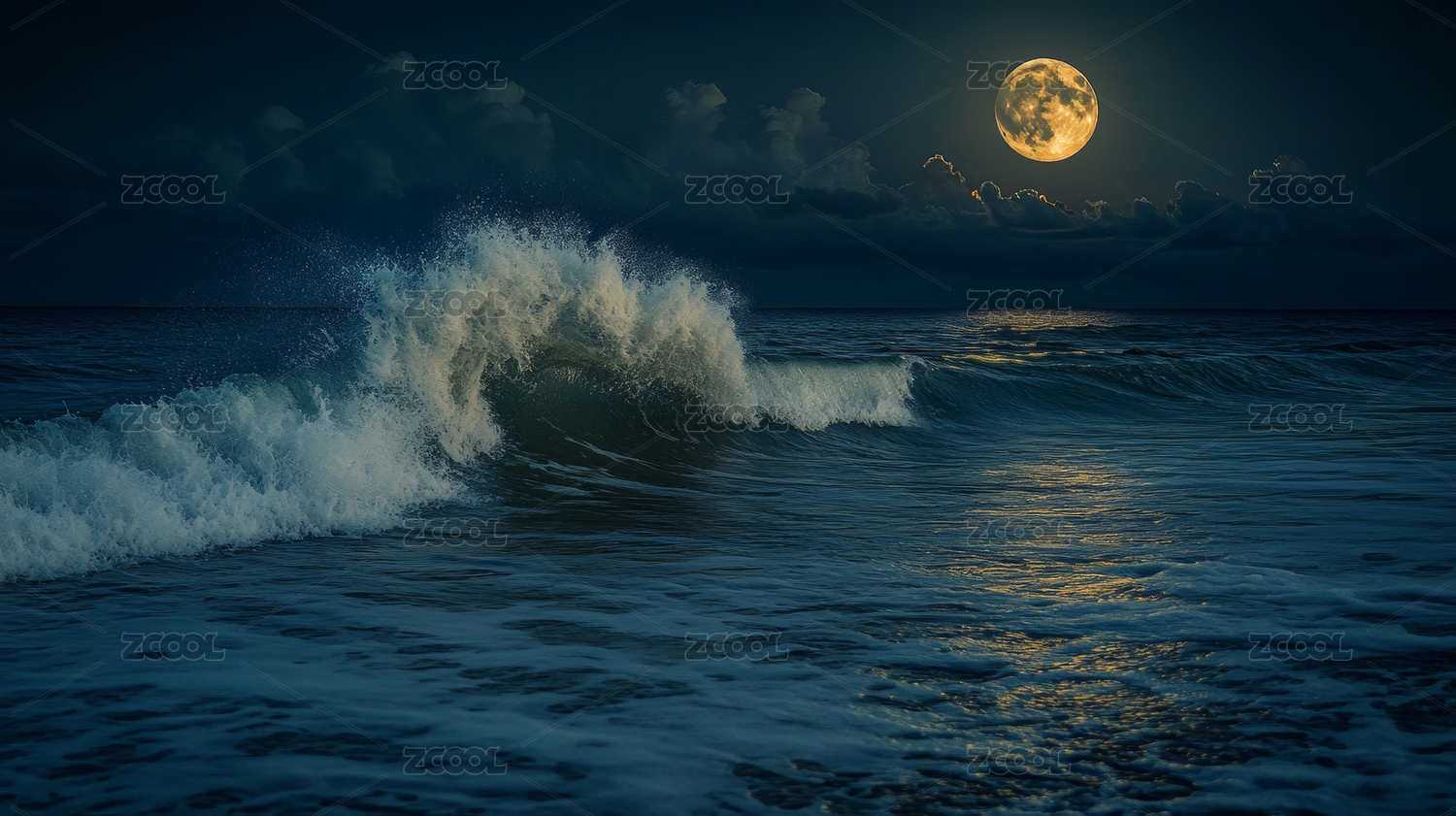 天空,水面,反射,宁静,明月,夜空,深蓝,云彩,广阔,海浪