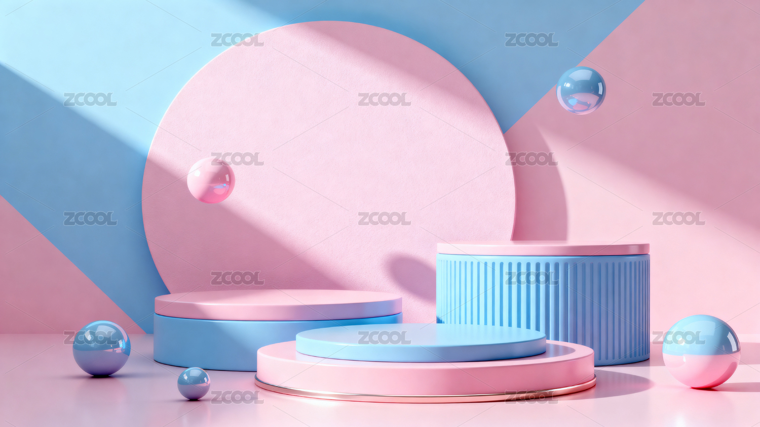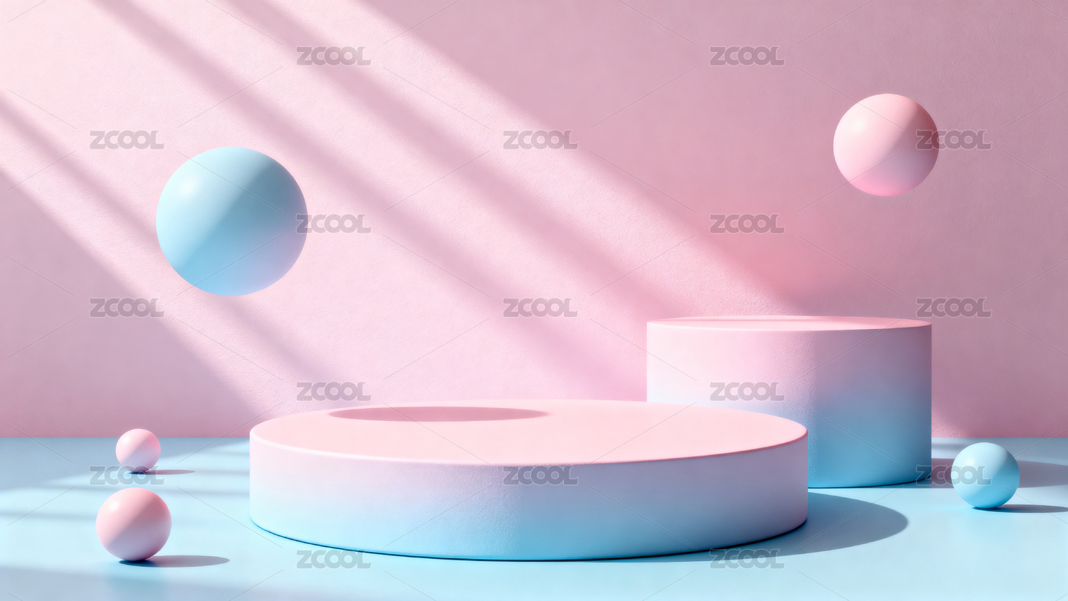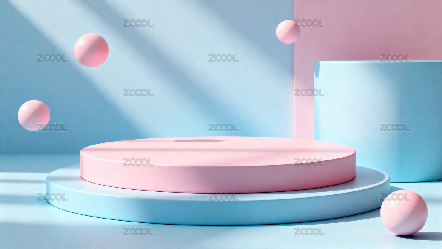 粉蓝背景圆台与球体场景
