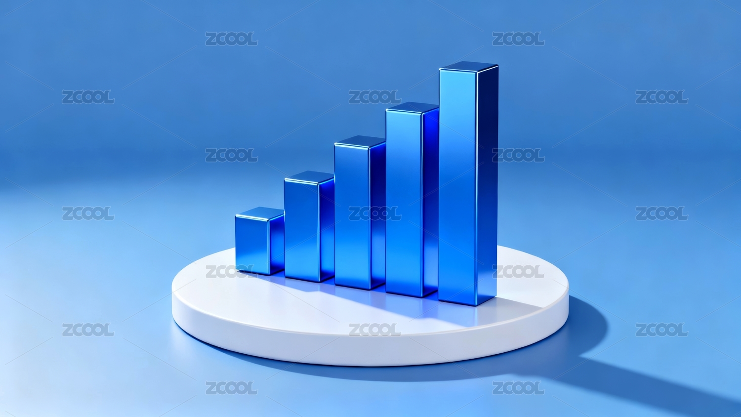 蓝色渐变背景下的立体柱状图