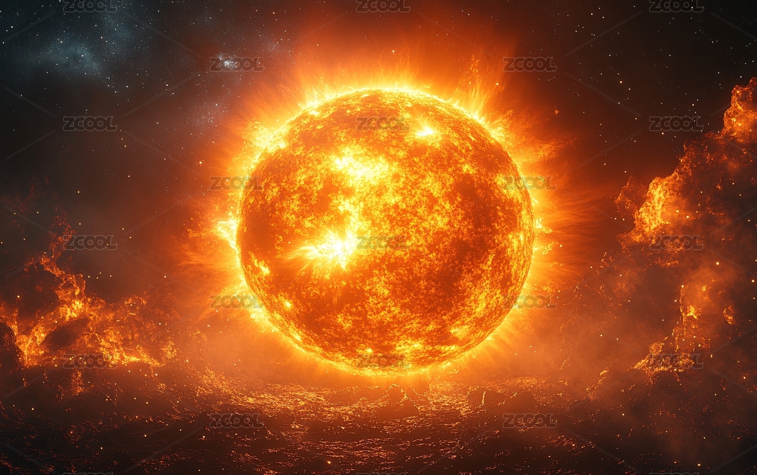 宇宙,深邃,空间,光晕,橙黄,火焰,炽热,动感,太阳,光芒